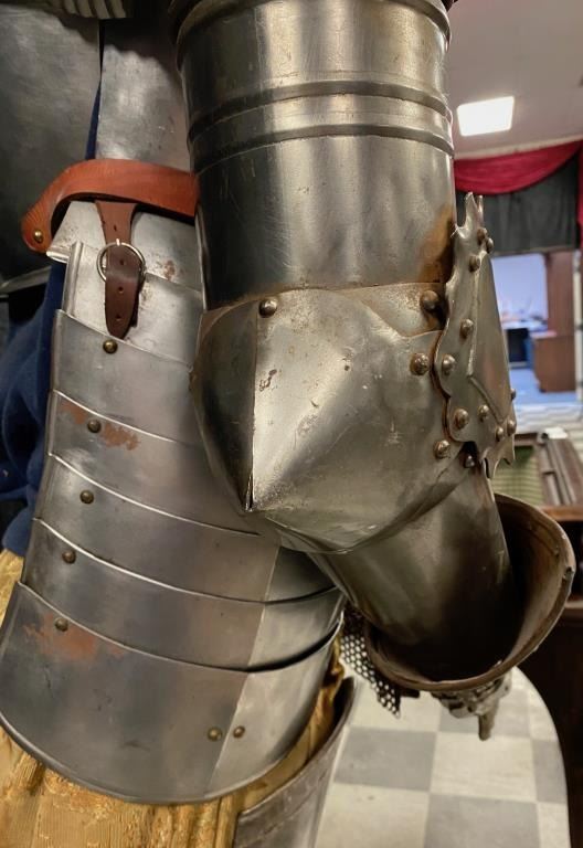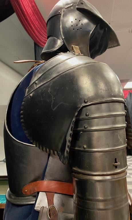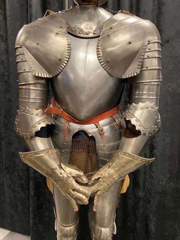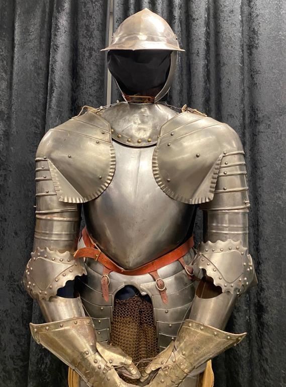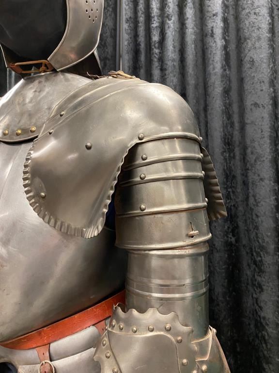 Spanish 1950-1970's articulated suit of armour on stand, probably Toledo. Est. 750-1500