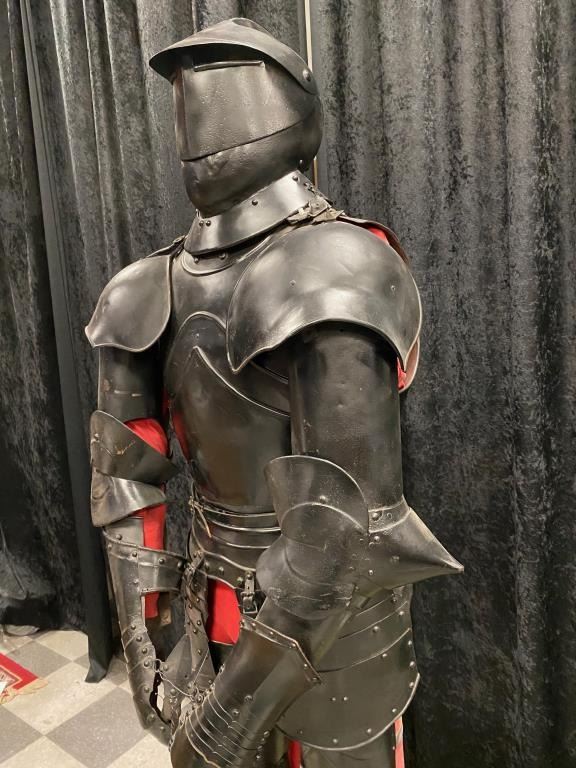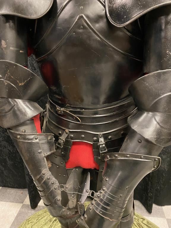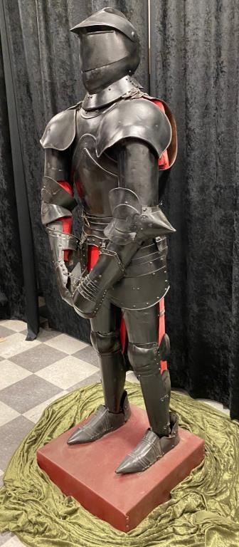"The Black Knight" antique suit of armour, 1940's-1960's, out of MGM movie studio's prop room. Good decorator. Est. $750-1500