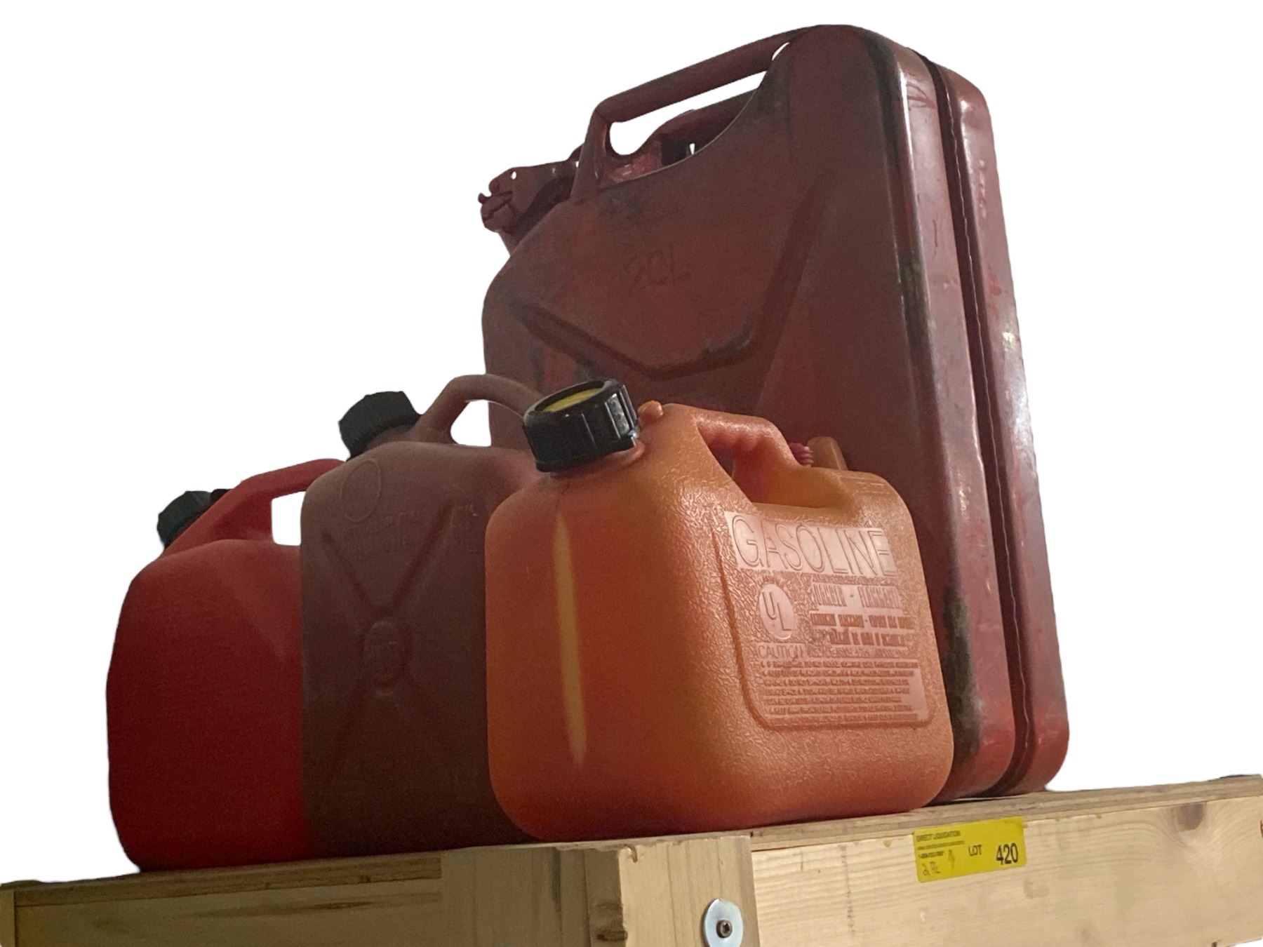 20L Metal Jerry Can & 3 Smaller Platic Gas Can