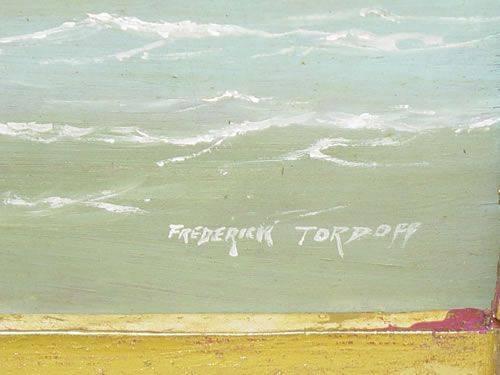 20TH CENT. OIL ON BOARD TITLED "SHIPPING OFF THE COAST", SIGNED FREDERICK TORDOFF (9 1/2" X 11 1/2")