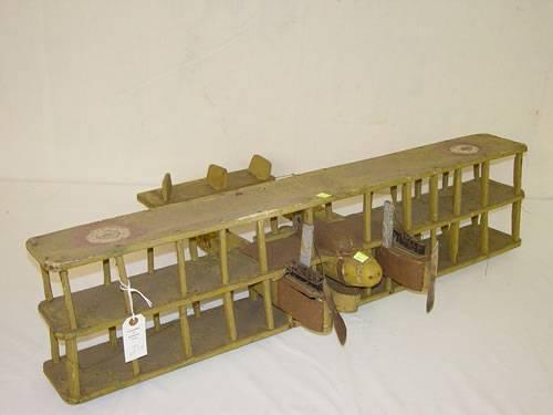 20TH CENT. WWI PAINTED FOLK ART BI-PLANE W/ WOOD & METAL CONSTRUCTION - CANVAS COVERED, LOSSES & IMPERFECTIONS;