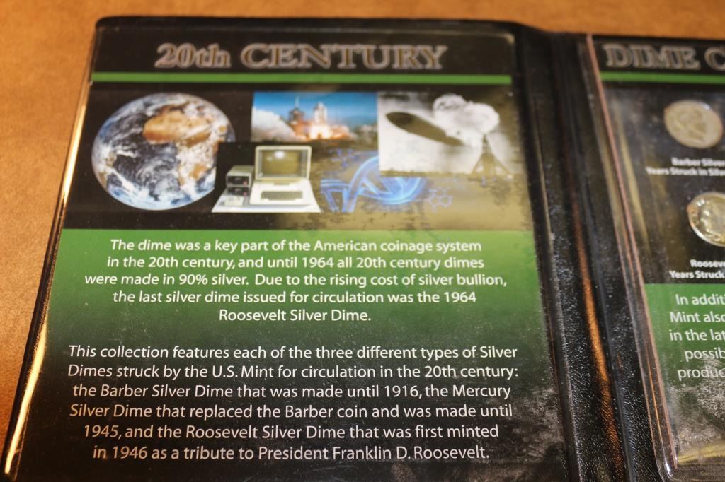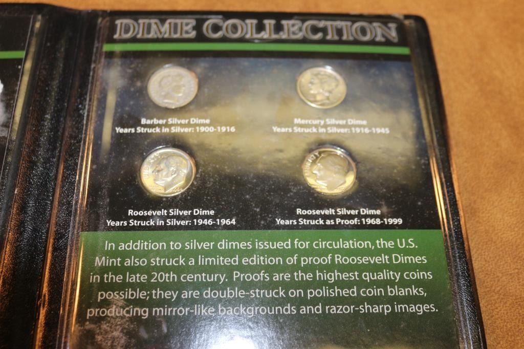 1943 MERCURY DIME, 1964-D SILVER ROOSEVELT DIME AND 1977-S PROOF SILVER ROOSEVELT DIME IN NICE FOLIO