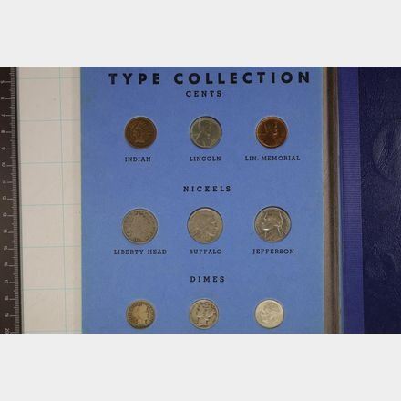 COLLECTION IN WHITMAN FOLDER CONTAINS: 18 US COINS, 1892 INDIAN HEAD CENT, 1943-D LINCOLN STEEL WAR CENT, 1960-D LINCOLN CENT, 1911 LIBERTY "V" NICKEL, 1936 BUFFALO NICKEL, 1960-D JEFFERSON NICKEL, 1916 SILVER BARBER