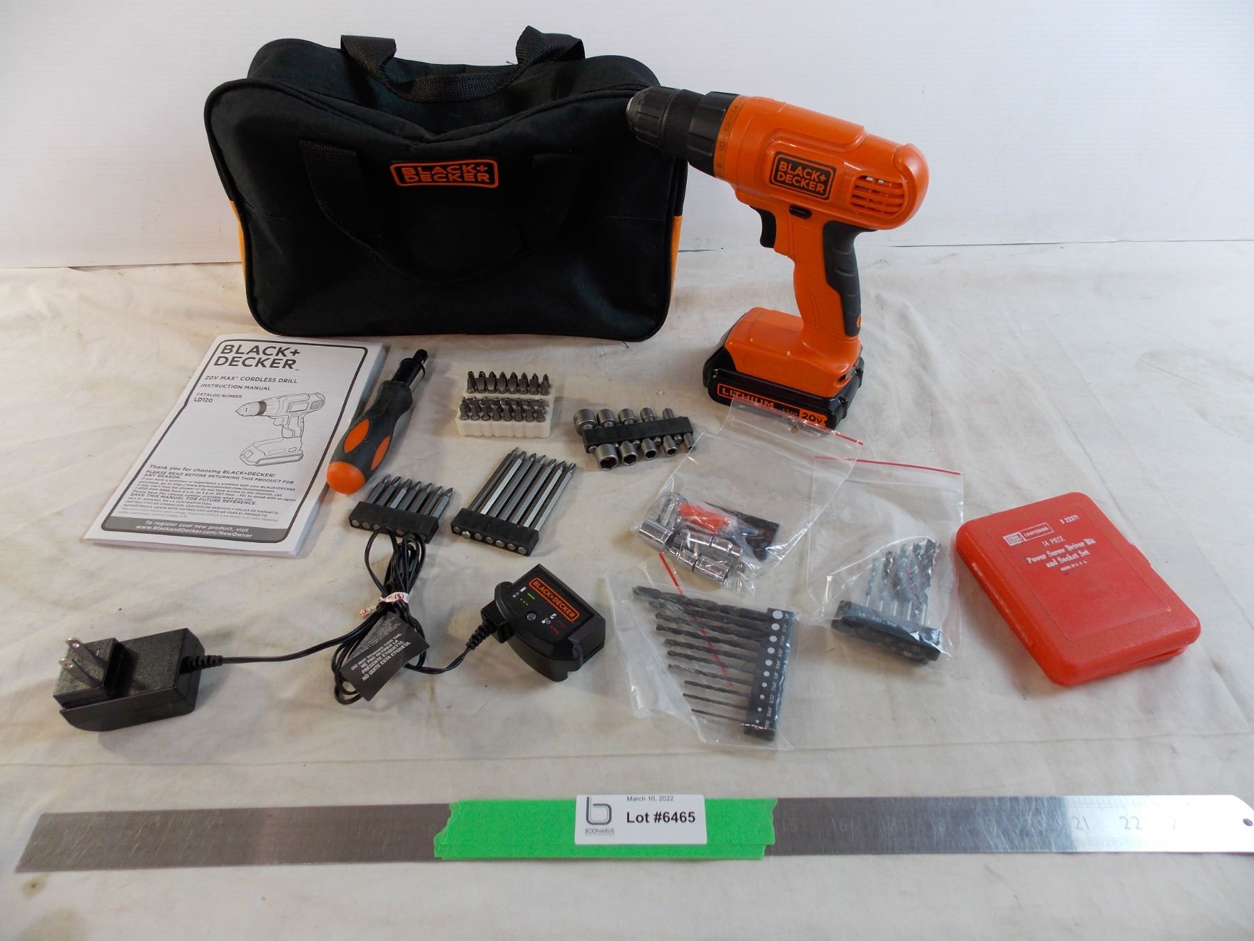 20V Black + Decker lithium battery drill, with charger, bits (working)