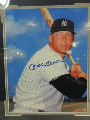 FRAMED MATTED 20X24 BASEBALL PHOTO AUTOGRAPHED MICKEY MANTLE COA. INCLUDES COA FROM MFP REBORN. AS SHOWN. VIEW PICTURE FOR DETAIL.