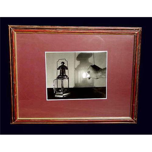 20th Century original photograph, By John R. Sarafian. The photograph depicts a Trompe l'Oeil still life -The gorgeous reflection of the (oil lamp) is being used like a subject to provide the still life ? Captured HAND OF LIGHT. Framed, and matted. This piece would make a wonderful addition to any fine household.