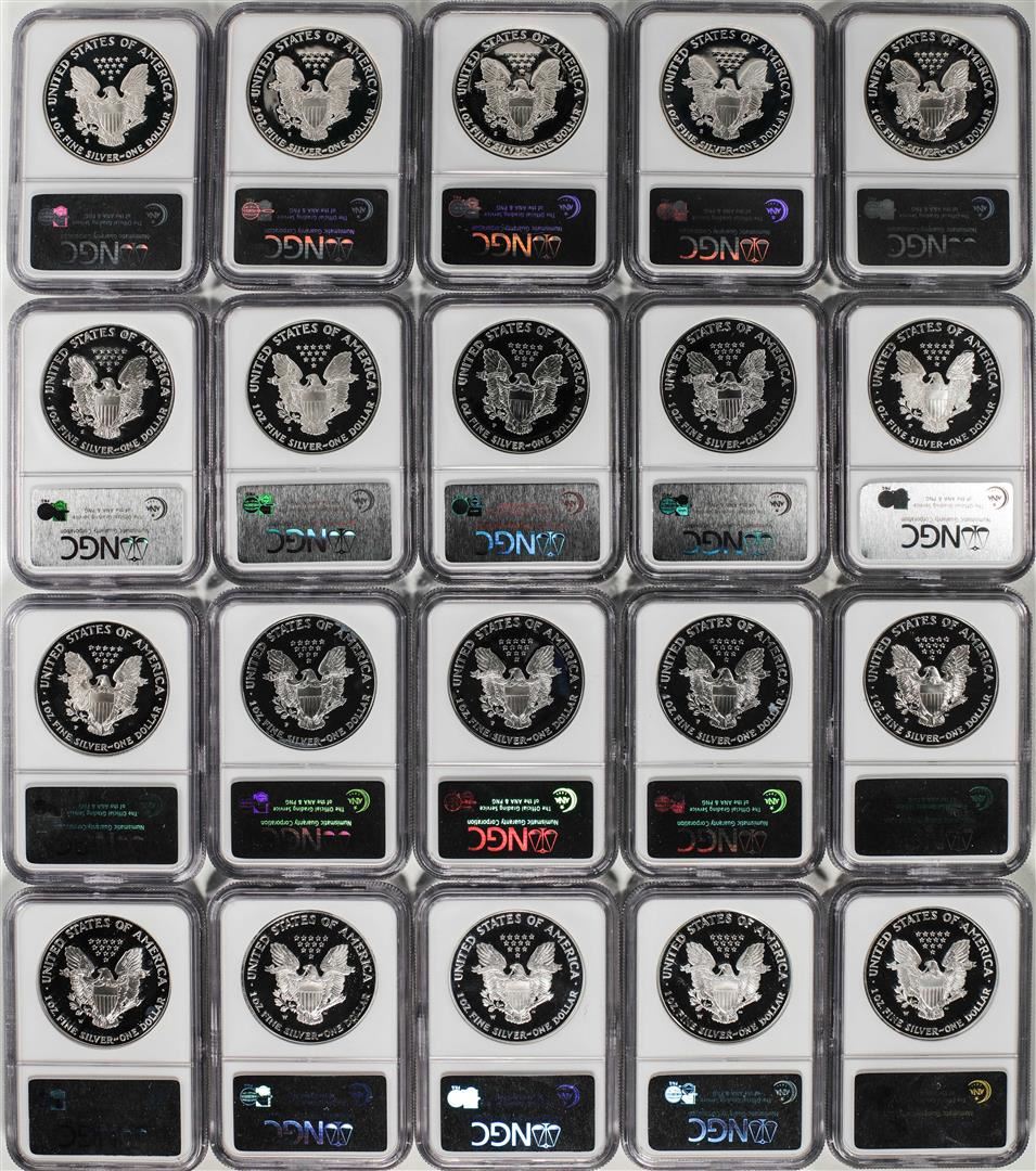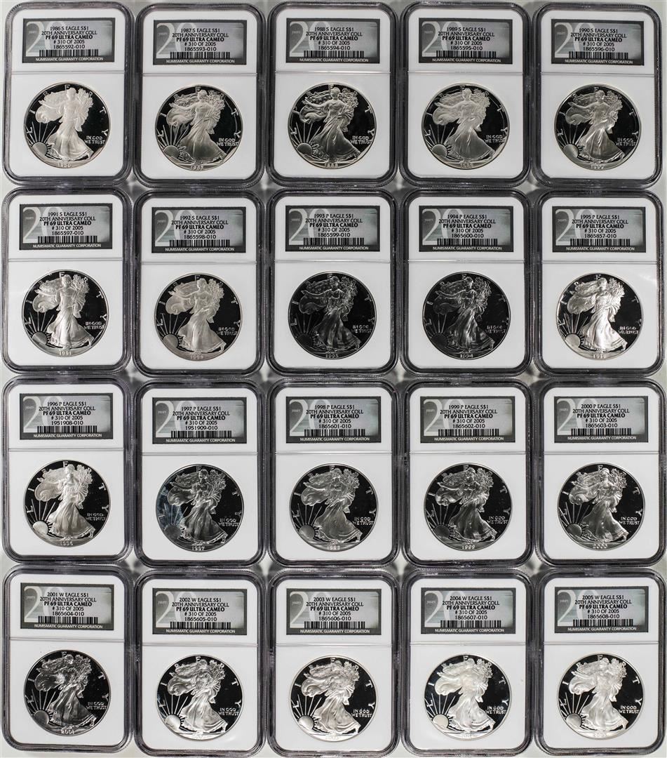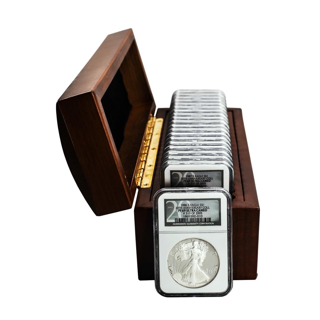 One 20th Anniversary Set 1986-2005 $1 Proof American Silver Eagle Coins NGC PF69 Ultra Cameo. NGC Certified.