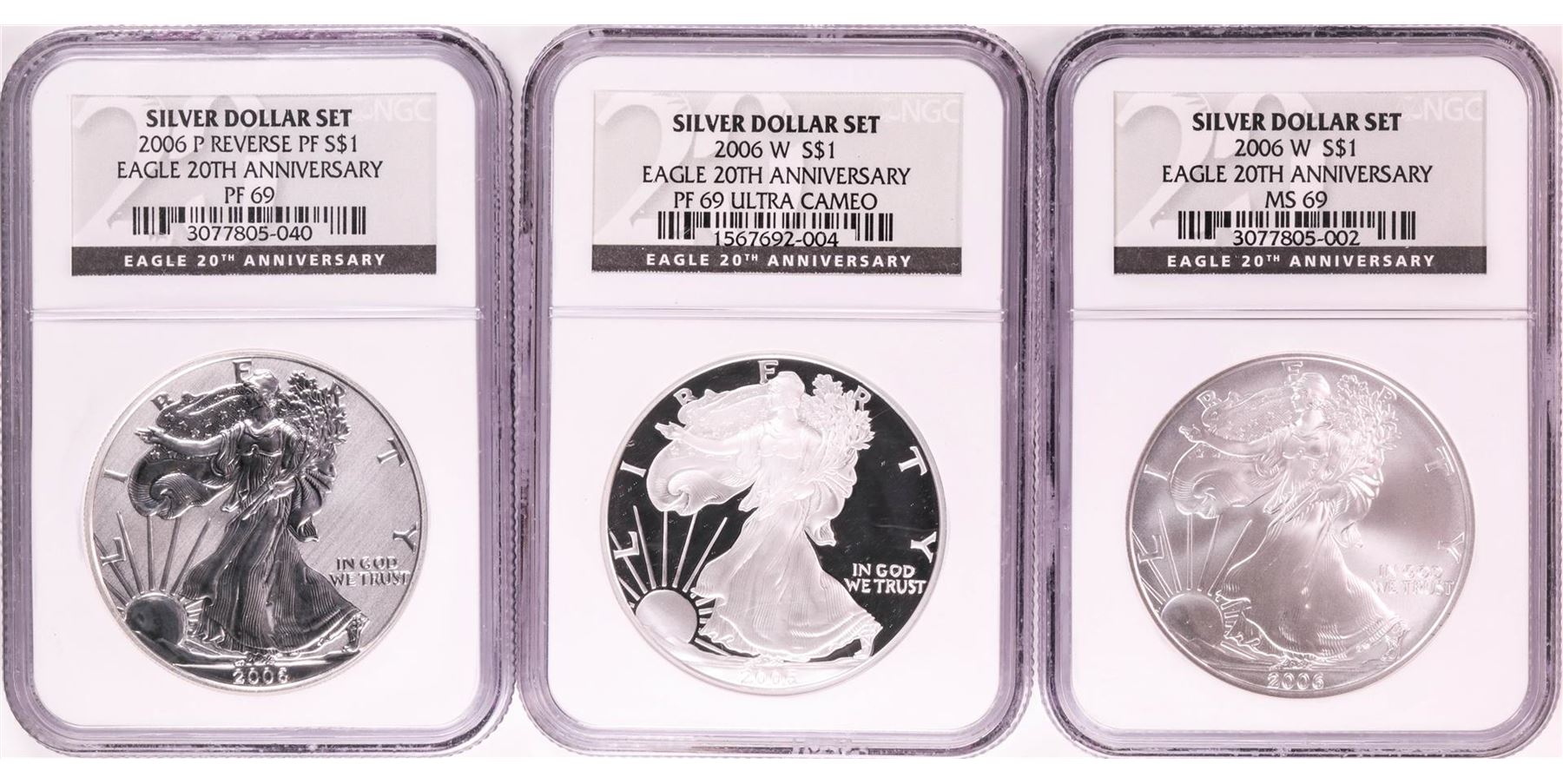 20th Anniversary Set of 2006 $1 American Silver Eagle Coins NGC Graded