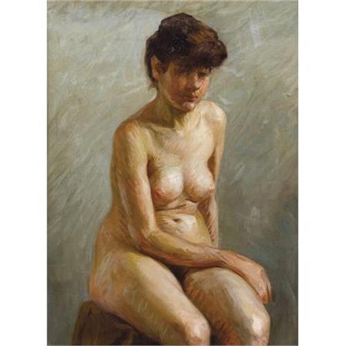 <B>FRENCH SCHOOL (20th Century) </B></I><BR><I>Portrait of a Seated Nude</B></I><BR>Oil on canvas<BR>42 x 39-1/2 inches (106.7 x 100.3 cm)<BR> <BR>PROVENANCE:<BR>Dorotheum, Vienna, Austria (label verso);<BR>Private collection, New York.<B>Condition Report:</B> Original canvas, minor abrasion along edges due to frame, otherwise good condition.<BR><BR><b>Shipping:</b> Requires 3rd Party Shipping (<a target="_blank" href="http://www.heritageauctions.com/common/shipping.php">view shipping information</a>)