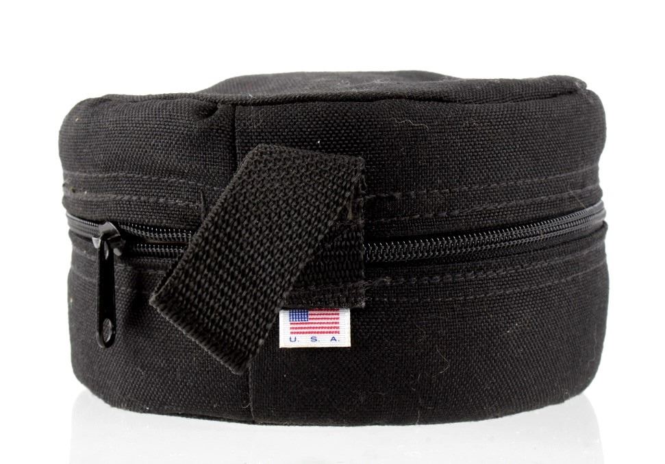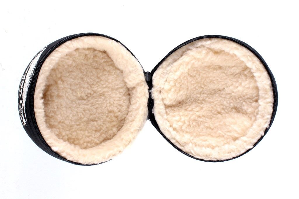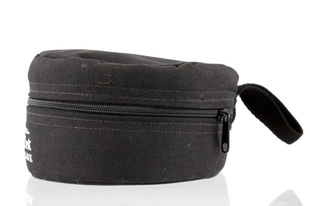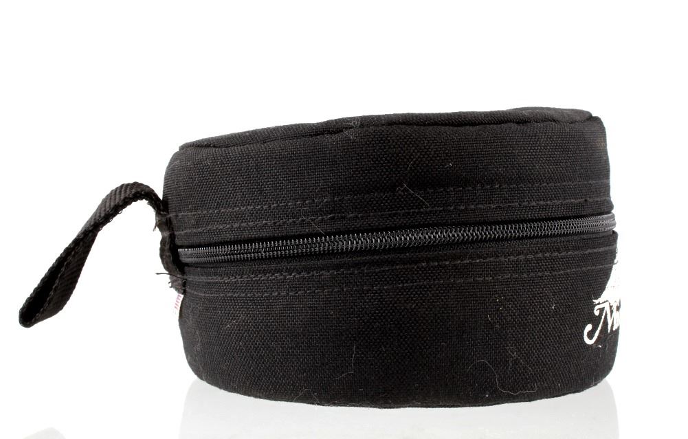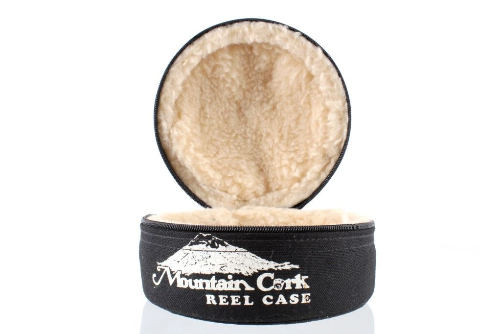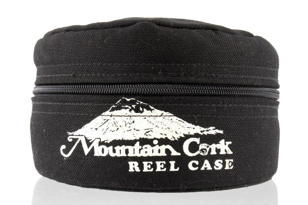 For your consideration is this 20th C. Mountain Cork fishing reel case. This cylindrical case shows a sheep skin interior with a nylon exterior and the Mountain Cork reel case and logo on the front of the case. The condition of this reel case is good and usable, with no obvious signs of damage. The measurements of this fishing reel case are 3 3/4" x 6 3/4" in diameter.