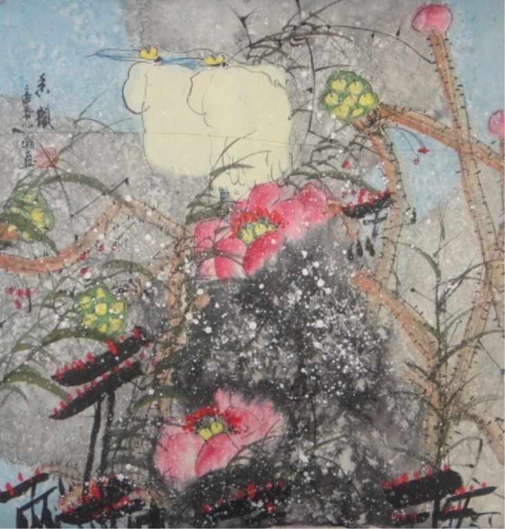 Prunus, Chinese ink and watercolour on paper; signed Jang Yi Chow and inscribed with one artist seal; 20th Century; 53.35 cm x 51 cm