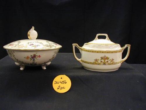 20th CENTURY IVORY BONE CHINA INCLUDES (1) 4 1/2inT GERMAN 3 FTD. COVERED FLORAL BOWL AL-KA KUNST KRONCH inJEANETTEin #79, (1) CZECH 4inT SUGAR BY EPIAG inMORESQUEin COVERED SUGAR (GOLD WEAR), 2 PC