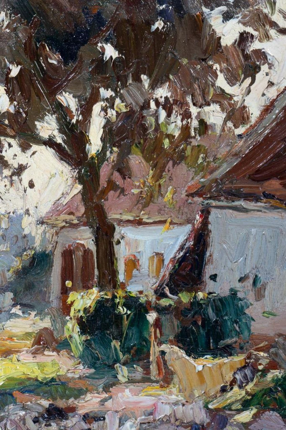 Title: Country Cottage. Medium: Oil on panel. Dimensions: 11 1/2 x 15 1/2 in. (image); 19 x 22 1/2 in. (frame). Condition: very good.