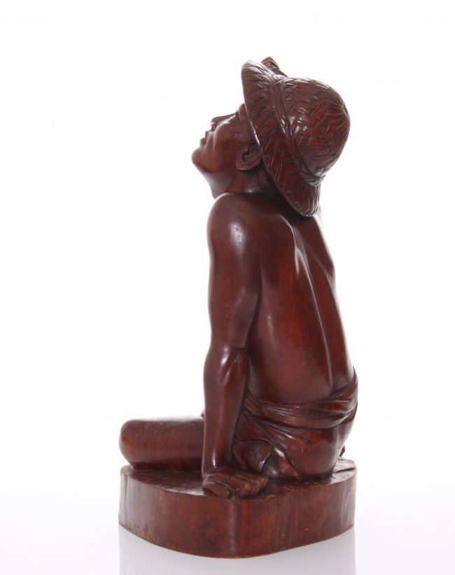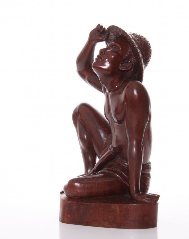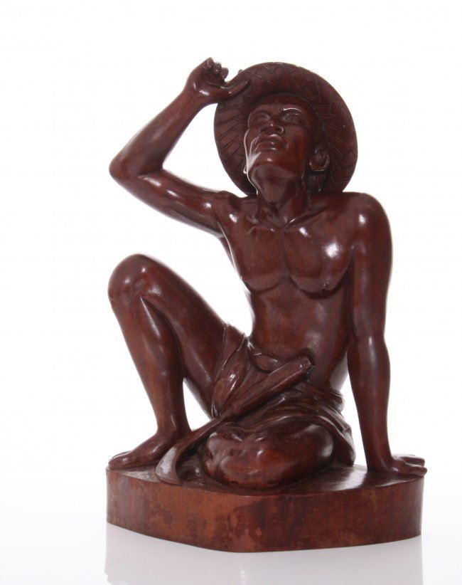 20th Century Balinese finely carved and polished hardwood sculpture of a farmer gazing into the future. Realistic fine details throughout while tipping his hat and holstering his cropping tool. Carving in the bottom "SIWA BALI INDONESIA". SIZE: see attached ruler photo. Photos are part of the description representing the condition report and can be used for authentication prior to the sale date. Pangaea Auctions urges Bidder's to view all attached photos in detail.