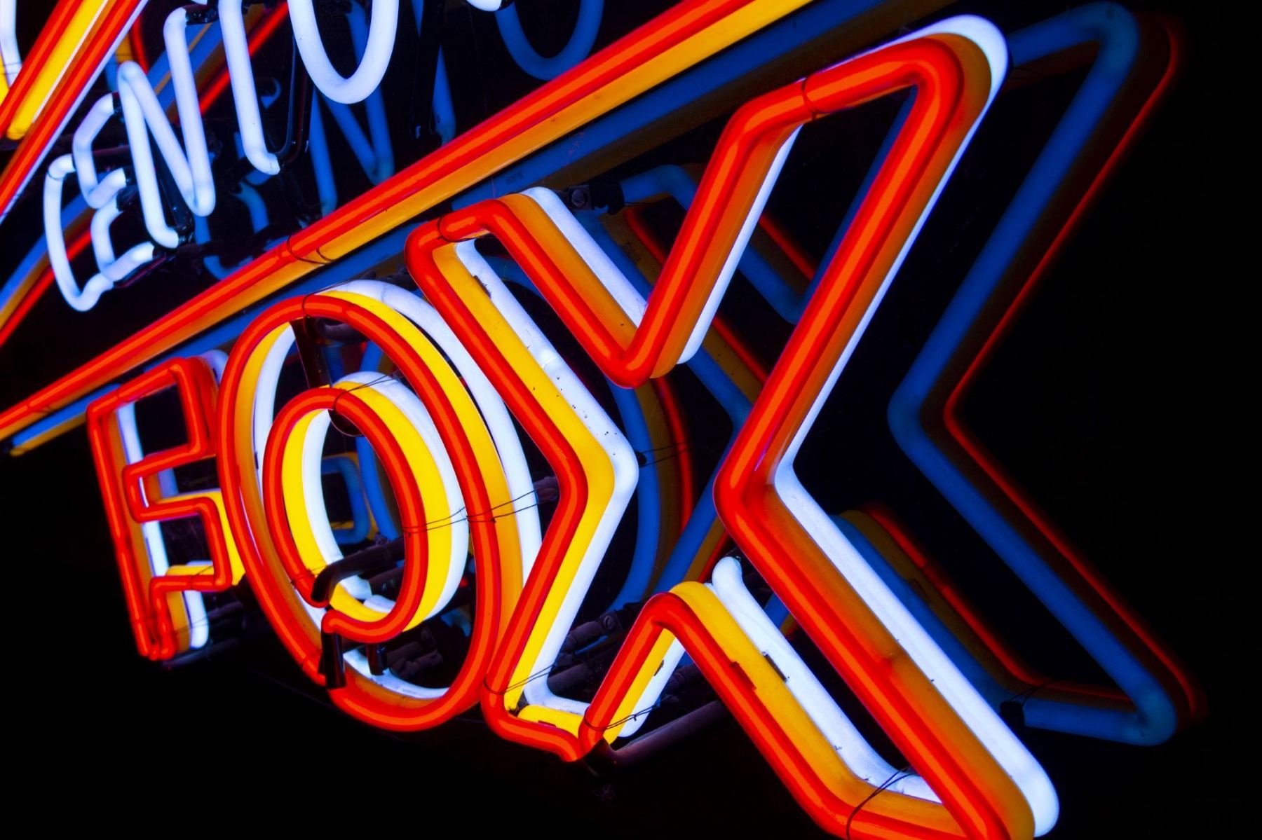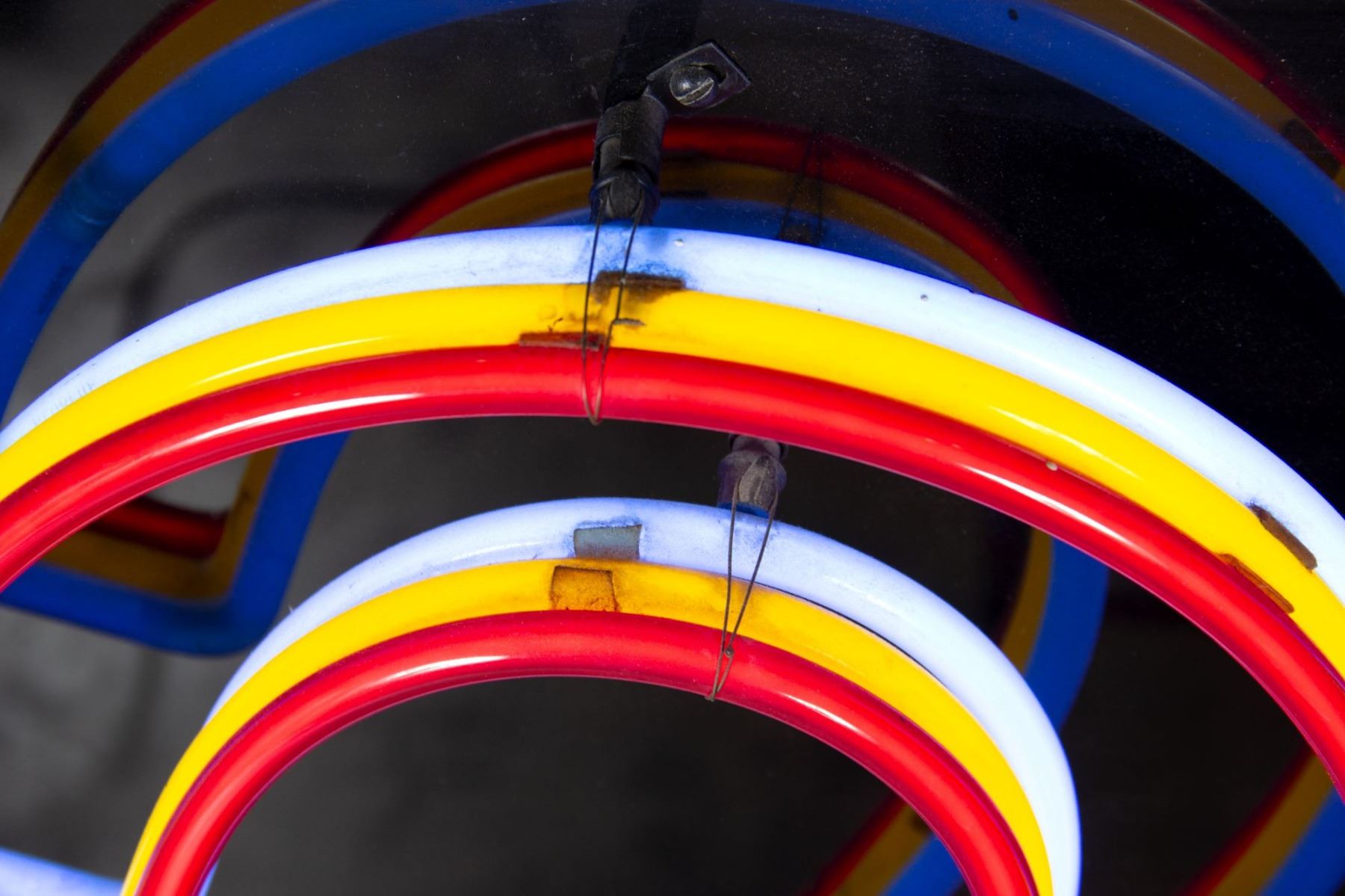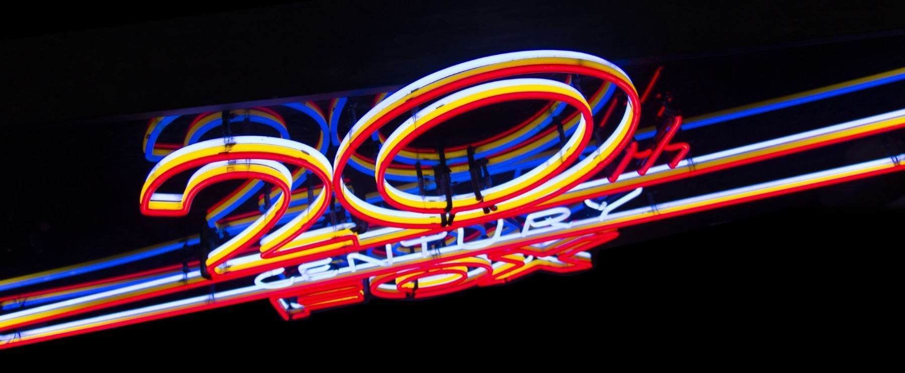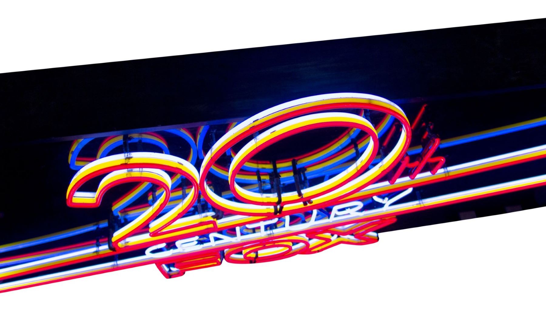(20th Century Fox, 1976) A one-of-a-kind, large neon sign depicting the logo for 20th Century Fox. This original sign was created by famed neon sculpture artist Lili Lakich for a Fox promotional campaign in 1976. The sign comes from the collection of Bill Wallen, who helped design promotional materials for the 20th Century Fox campaign. While creating the materials, it was decided that photographing an actual neon sign for the logo would result in a better image for publication and Lakich was hired for the job. This resulting neon sign was used in the promotion and was then purchased from Lakich by Wallen. This incredible functioning work of art is all original and is significant both in its ties to 20th Century Fox, as well as to Lili Lakich. Measuring approximately 97" long, 12" deep, and 52" tall, the sign is in good working condition with some scratches and general wear to portions of the black sign body from use and previous display. Special shipping arrangements will apply, please contact us for estimates and inquiries.