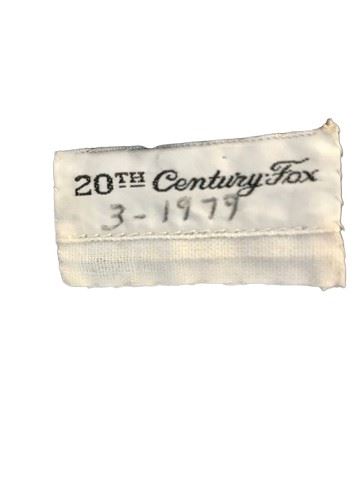 Unknown film -20th Century Fox vintage custom-made black jacket. Made of lightweight, shiny vinyl with faux fur around the top half. Includes a vintage 20th Century Fox tag with "3–19 79" written on it.
