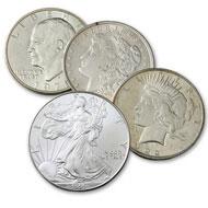Large US Silver CoinsFour Coin Set of America's Last Large Dollar Coins Historic Collection Spans over 100 Years of Mint History. Morgan, Peace, IKE, Eagle. Various dates. Some Unc-some average circulated