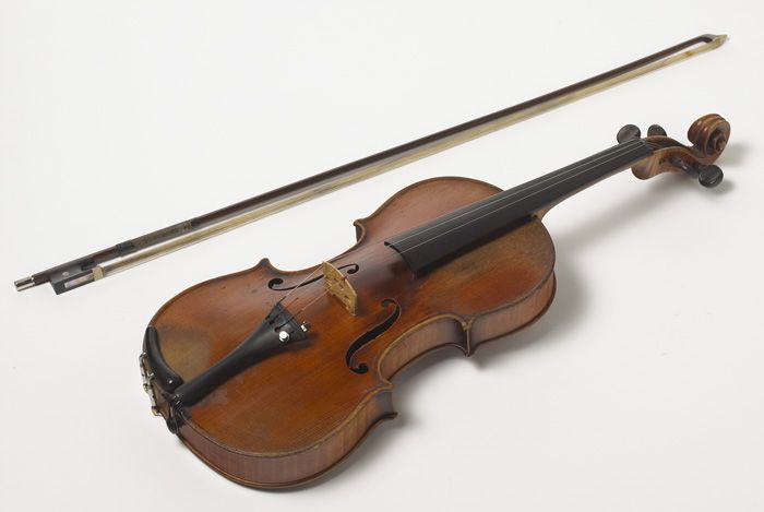 A violin with label "Bennettini, Via S. Giovanni alla Conca 45, Milano". 14in. back. Some recent refurbishment. With case and bow.