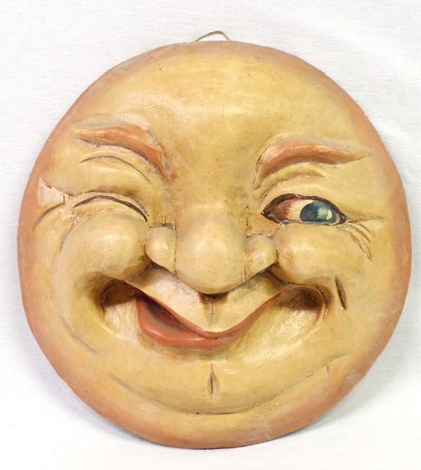 20th Century Folk Art Winking Man in the Moon Wood Plaque, measures 10''D x 2.5''