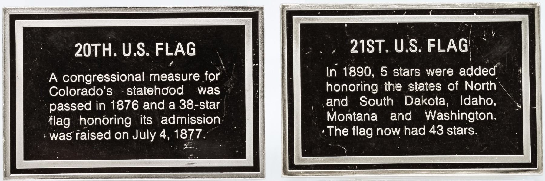 One 20th and 21th US Flag Silver Bars. Each bar weighs 1.4oz.