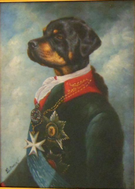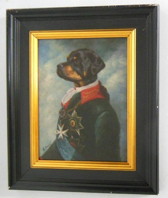 Depicting "Dog in Generals' Suit". Image approx. 16" X 12". Framed approx. 22" X 18".