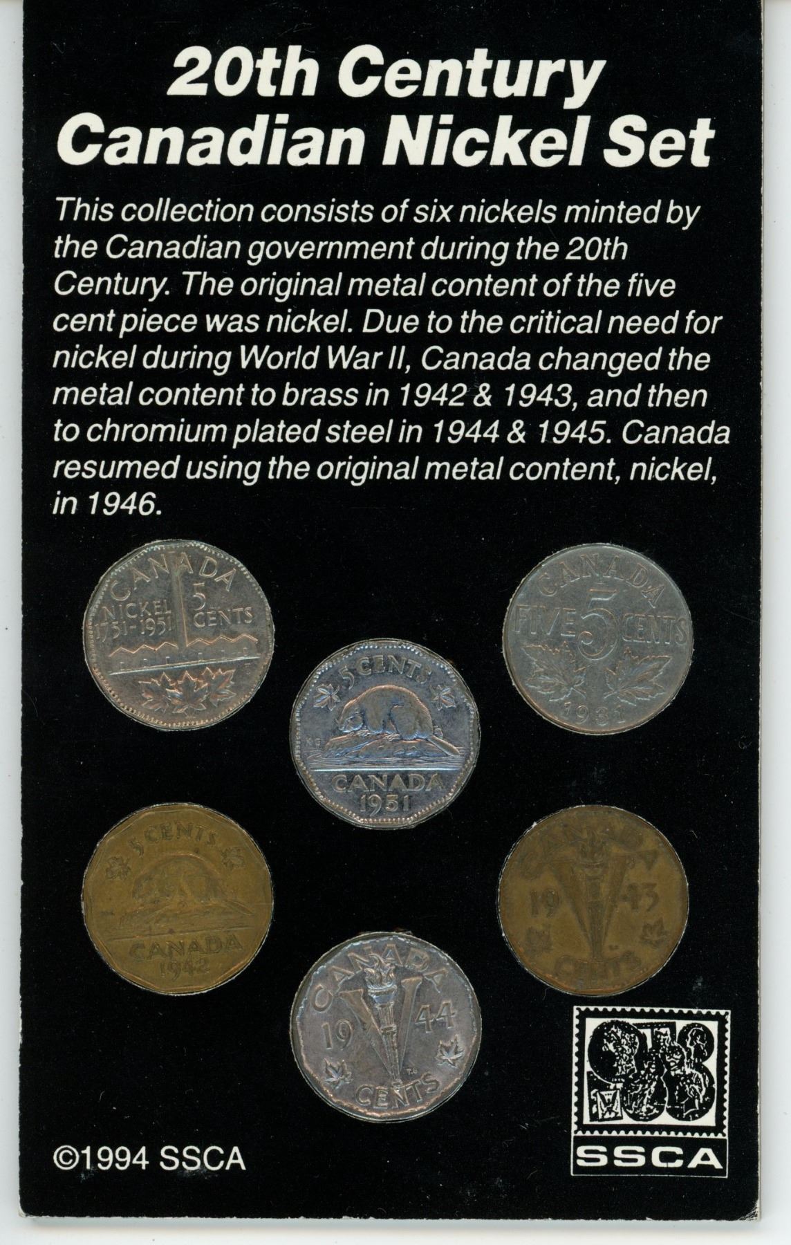20th century Canadian nickel set