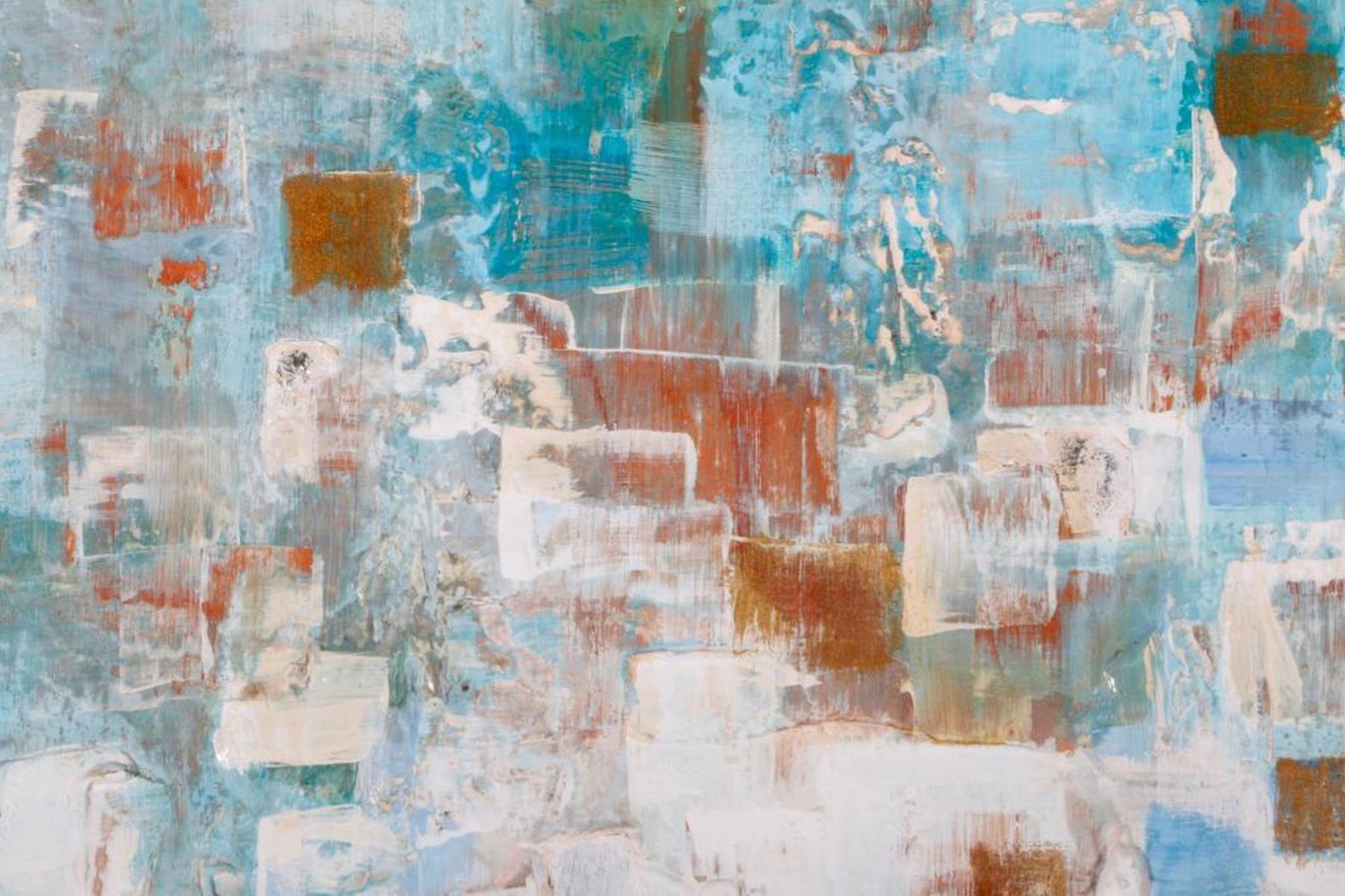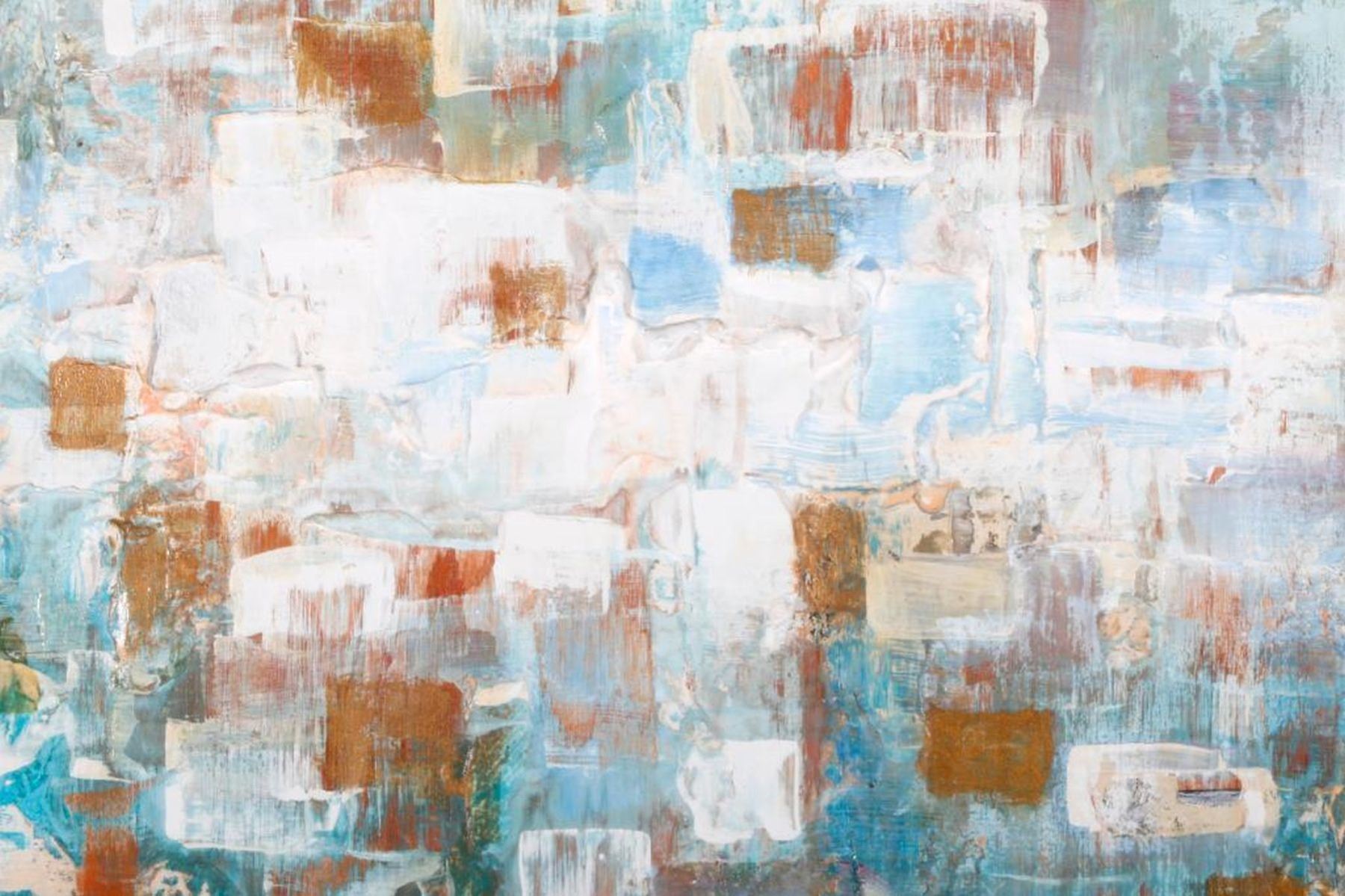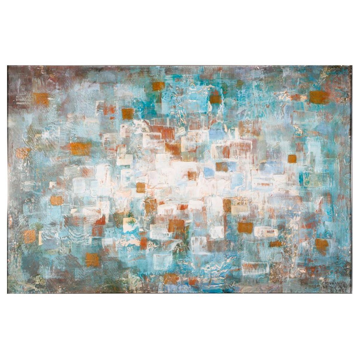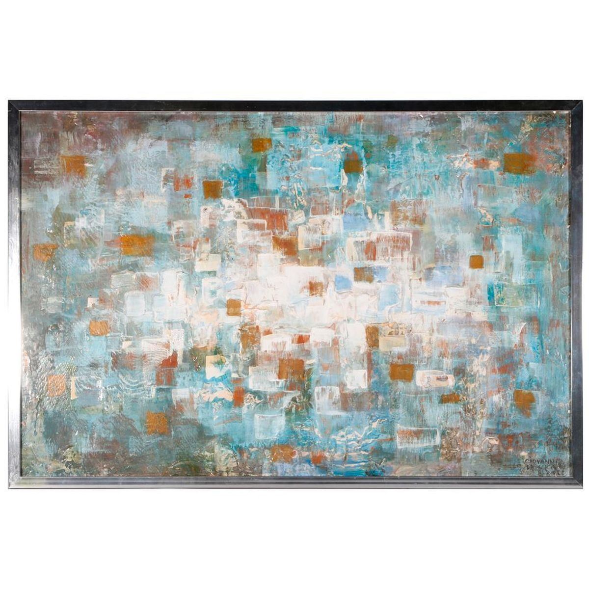 Artist: Giovanni da Luca (signed lower right). Subject/Title: Abstraction. Date Created: Late 20th century. Medium: Oil on board. Size Image: 24 inches high x 36. Size Frame: 25 inches high x 37. Condition: Good, small scrapes to edges.