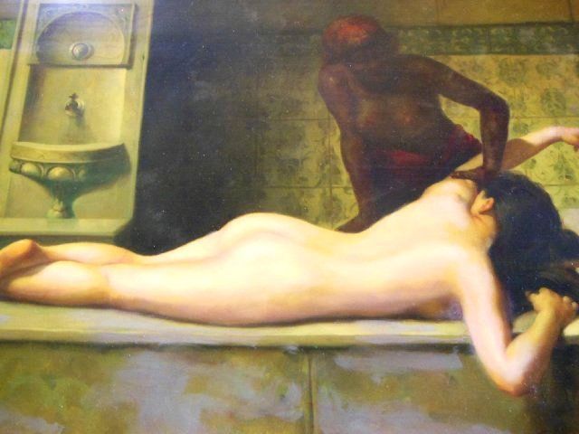 Depicting '2 Nude Women.' Image approx. 16" X 12". Framed approx. 18" X 22".