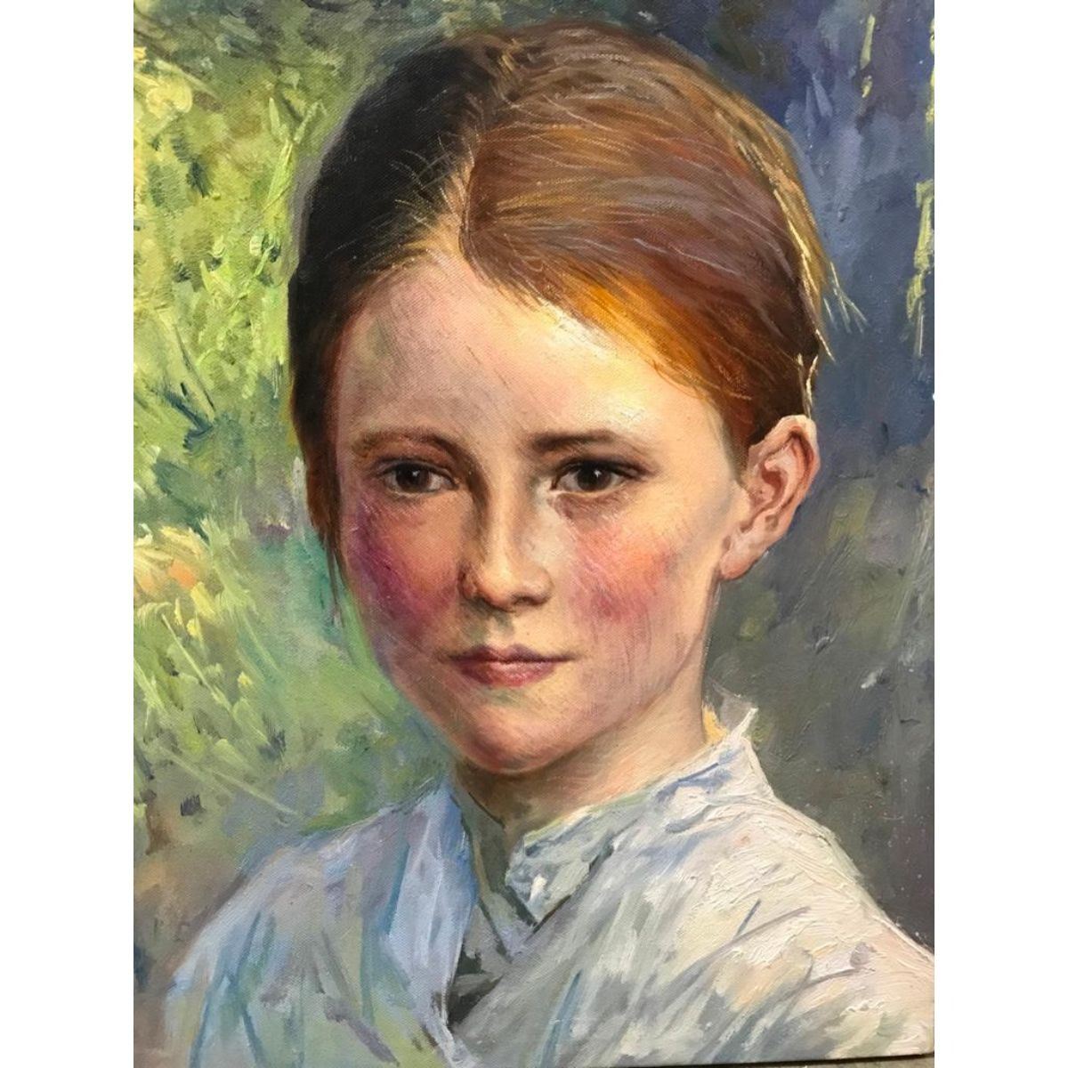 20th Century Russian Impressionism, oil on canvas painting, Peasant Girl. 20" X 24" on stretched canvas.Â
