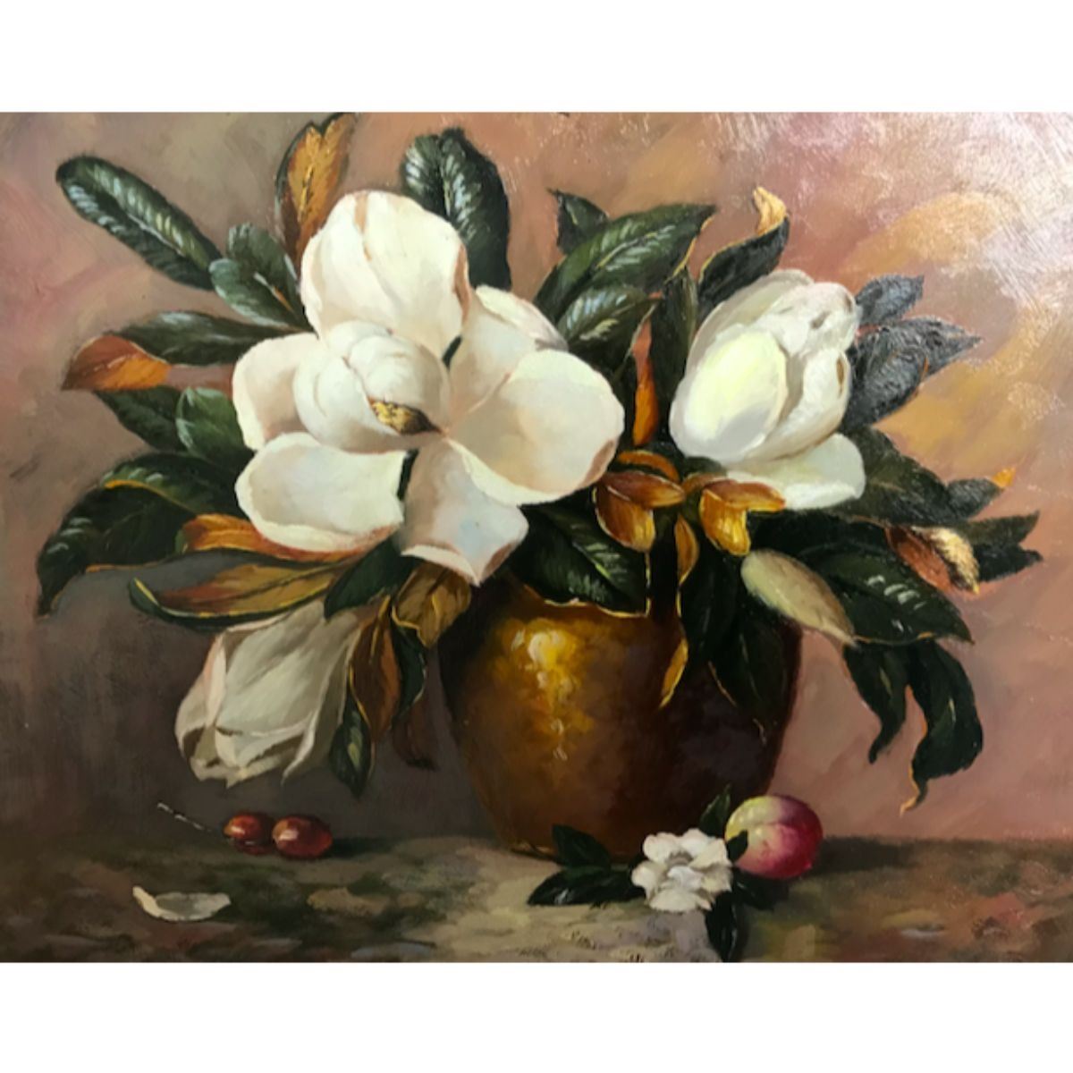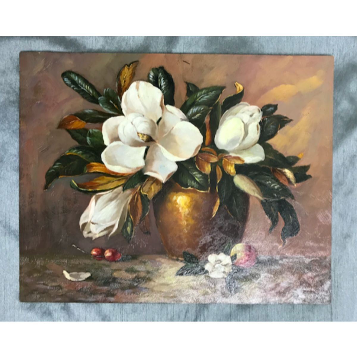 20th-Century Still Life oil on panel painting, Magnolias. 8" X 10". Unsigned.