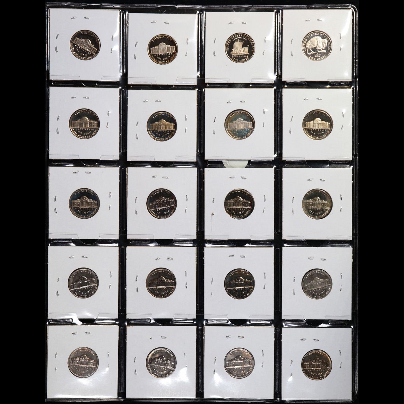 20x Proof Jefferson Nickels in a Page, Dates from 1959 to 2005! Jefferson Nickel 5c Grades Brilliant