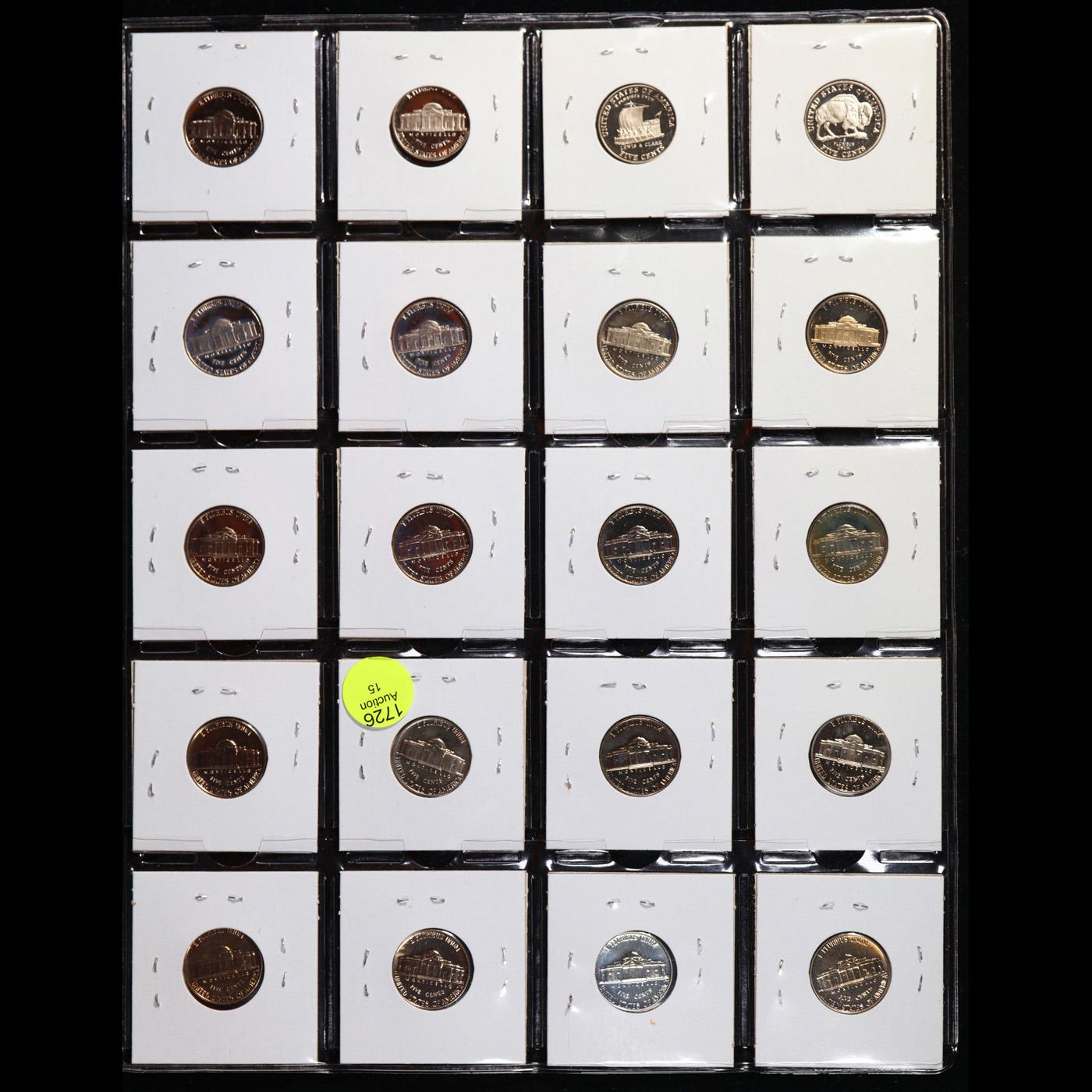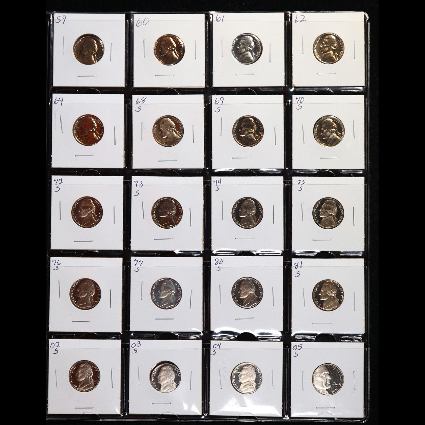 20x Proof Jefferson Nickels in a Page, Dates from 1959 to 2005! Jefferson Nickel 5c Grades Brilliant