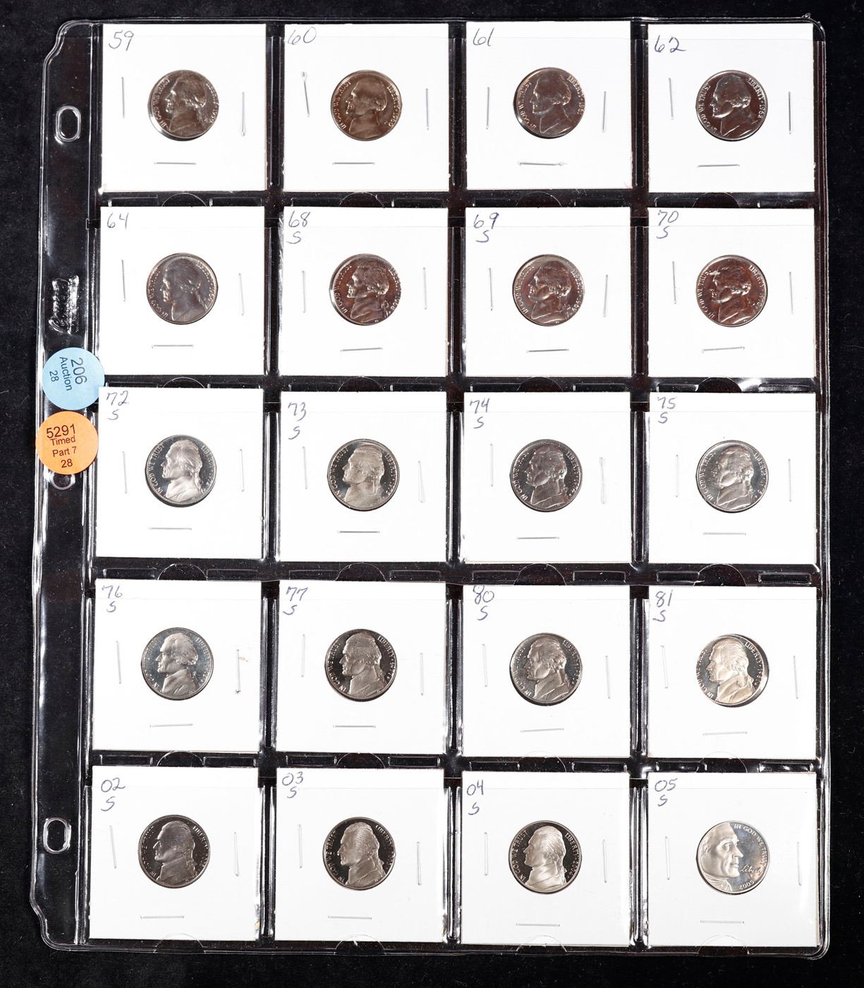 20x Proof Jefferson Nickels in a Page, Dates from 1959 to 2005! Jefferson Nickel 5c