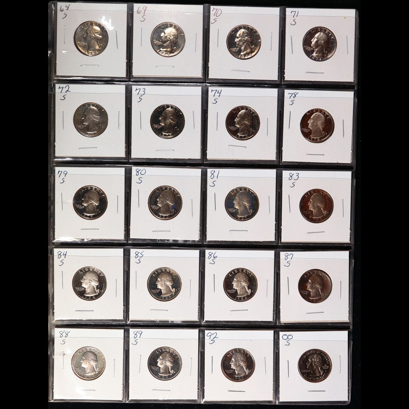 20x Proof Washington Quarters in a Page, Dates from 1968 to 2009! Washington Quarter 25c Grades Bril