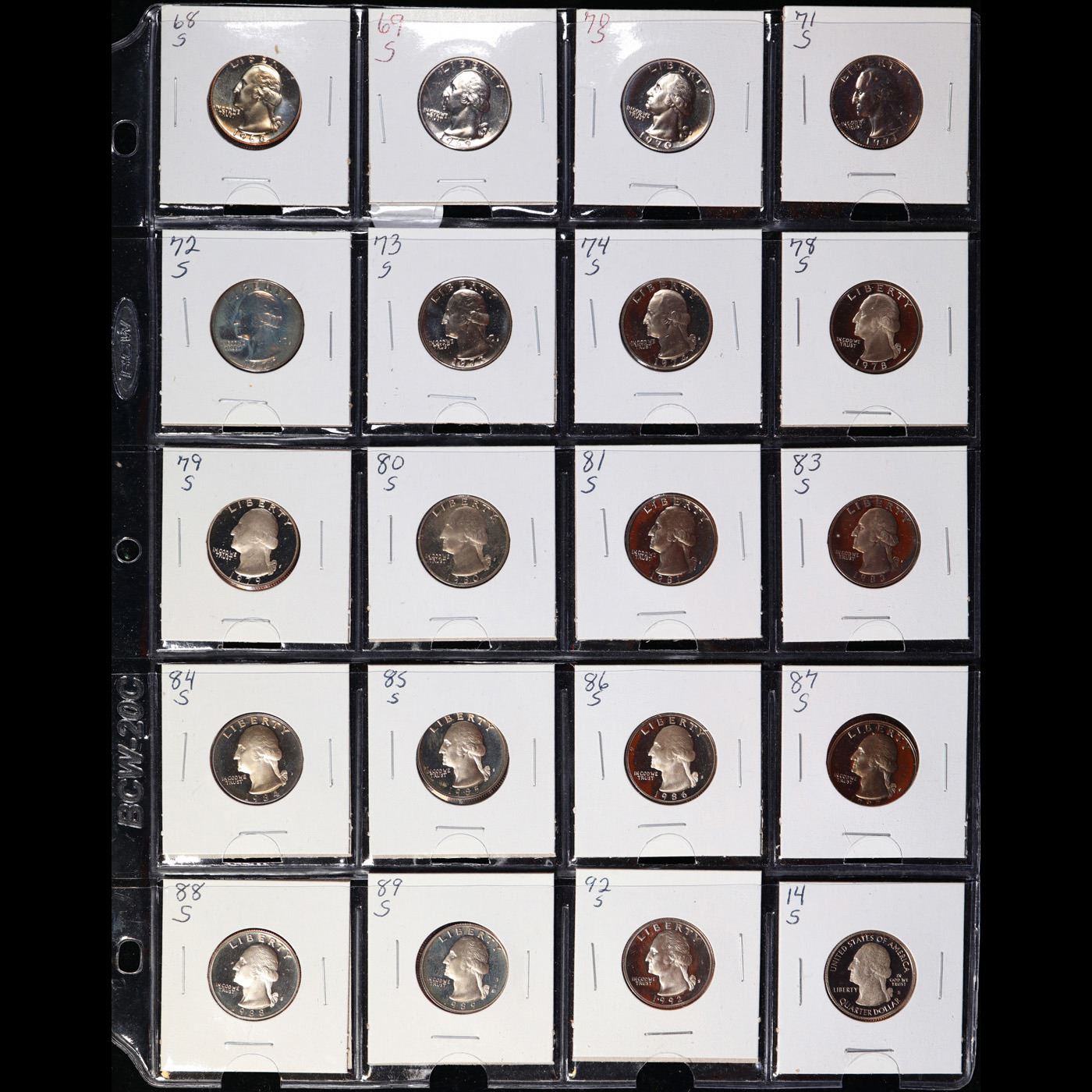 20x Proof Washington Quarters in a Page, Dates from 1968 to 2009! Washington Quarter 25c Grades Bril