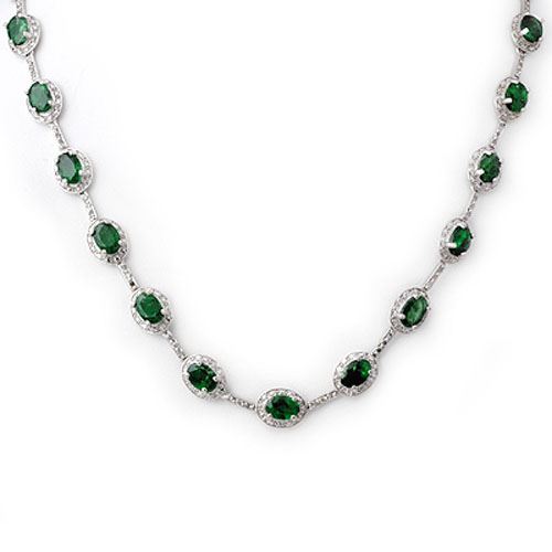 REF-183A8X -10417 ---- 21.0 CTW Emerald & Diamond Necklace 10K White Gold ---- Luxury Designer Brand Necklace Appraised at $13,150 Certificate Number US10417 10k White gold, Necklace Size is 16 Incehs, Necklace measuring approx. 16 1/4" x 1/4", weighing in total approx. 25.7 grams. Made in the USA and is stamped 10k, Main stone 20 carat total weight containing 25 pieces of Intense Green color with AAA quality Oval shape cut Emerald , Stone #2 1 carat total weight containing 72 pieces of H-I color with VS/SI quality Round shape cut Diamond