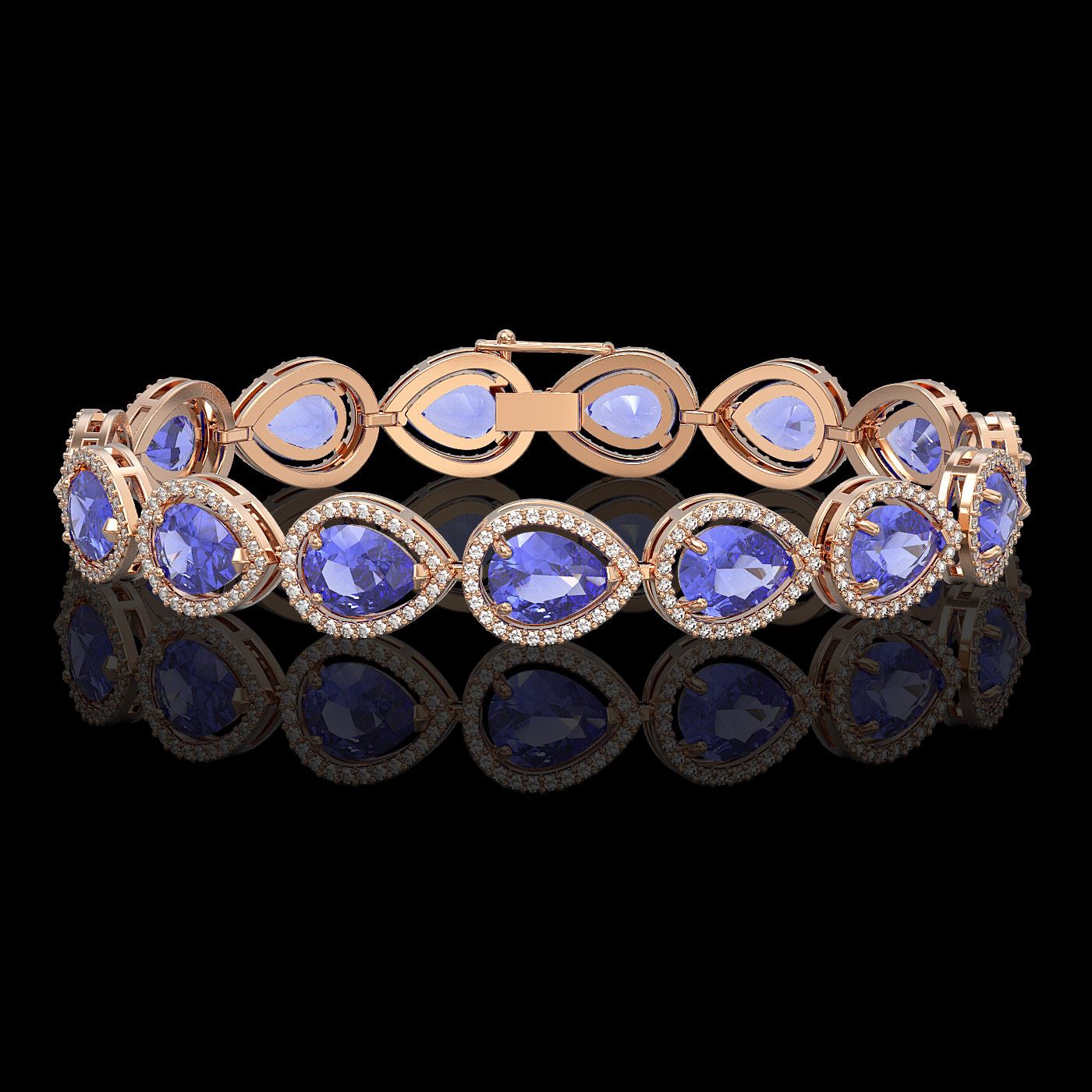 REF-532N4F - SKU: 41244 ---- 21.06 ctw Tanzanite & Diamond Micro Pave Halo Bracelet 10k Rose Gold