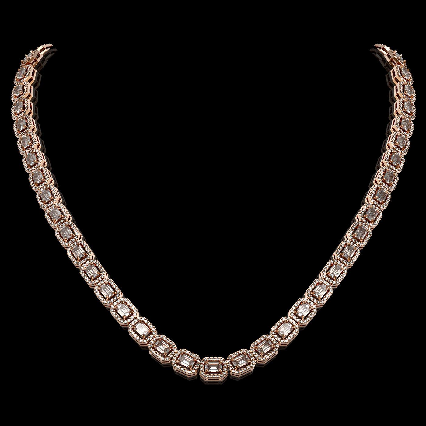 REF-2509G6W - SKU: 42930 ---- 21.12 ctw Emerald Cut Diamond Micro Pave Necklace 18K Rose Gold