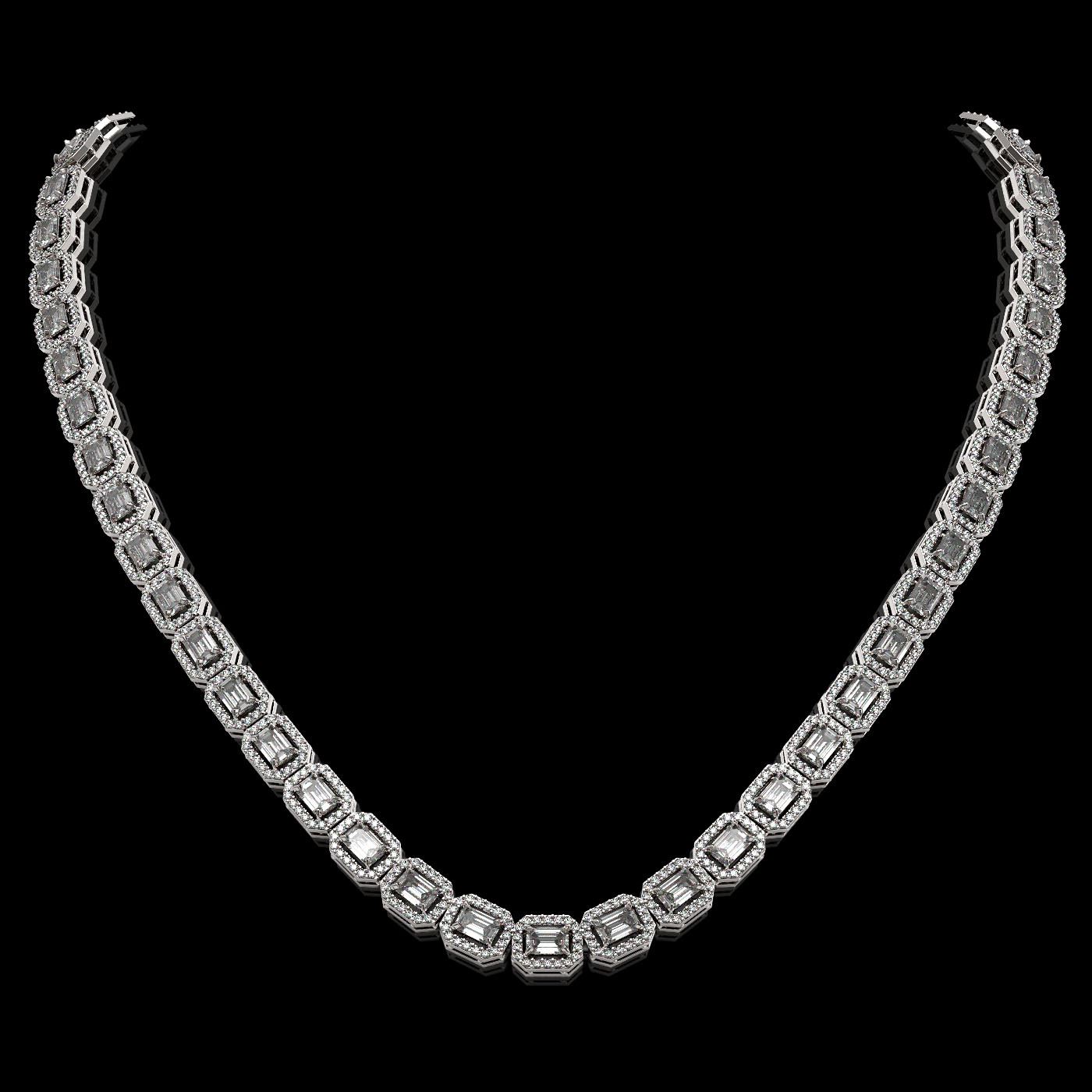 REF-2509F6M - SKU: 42929 ---- 21.12 ctw Emerald Cut Diamond Micro Pave Necklace 18K White Gold