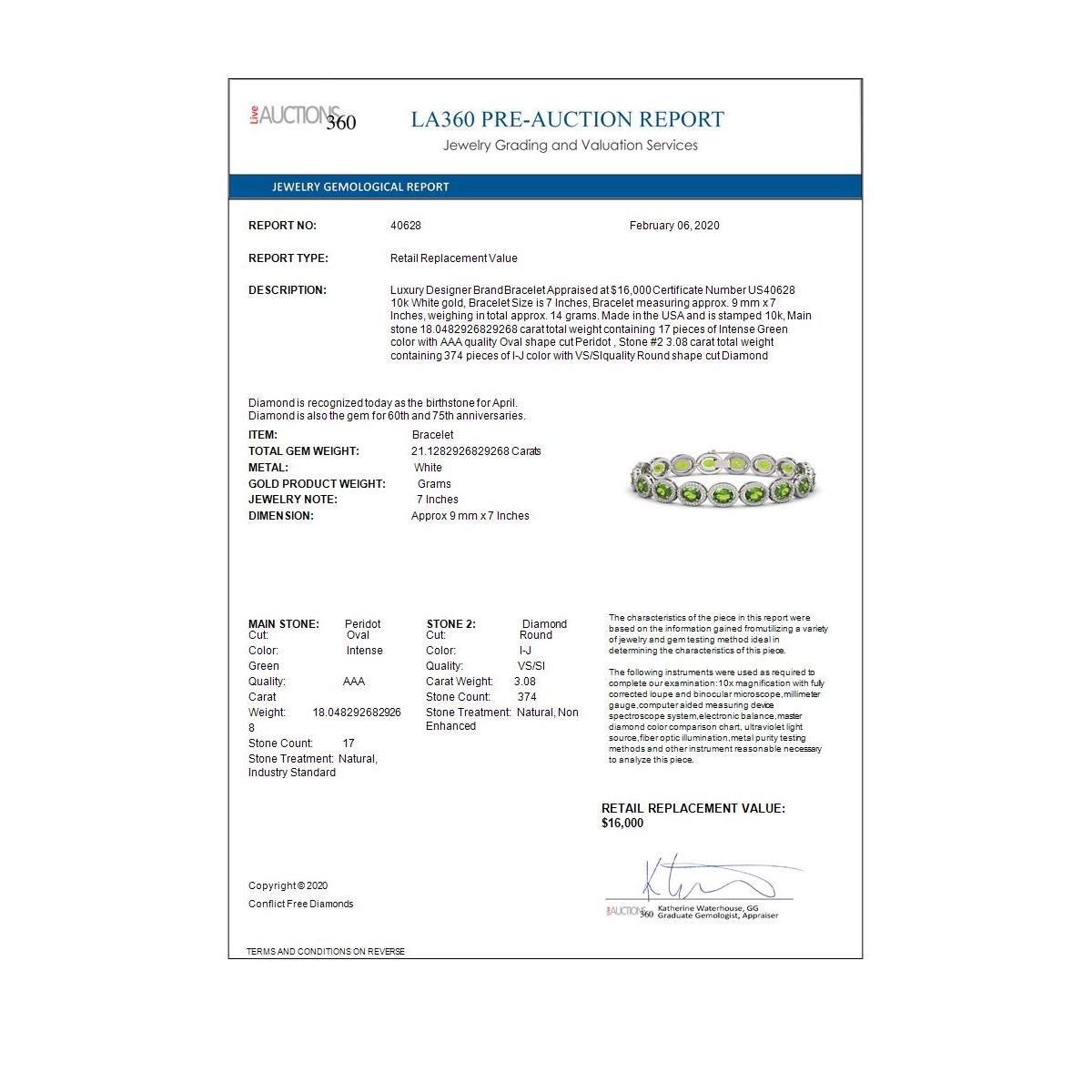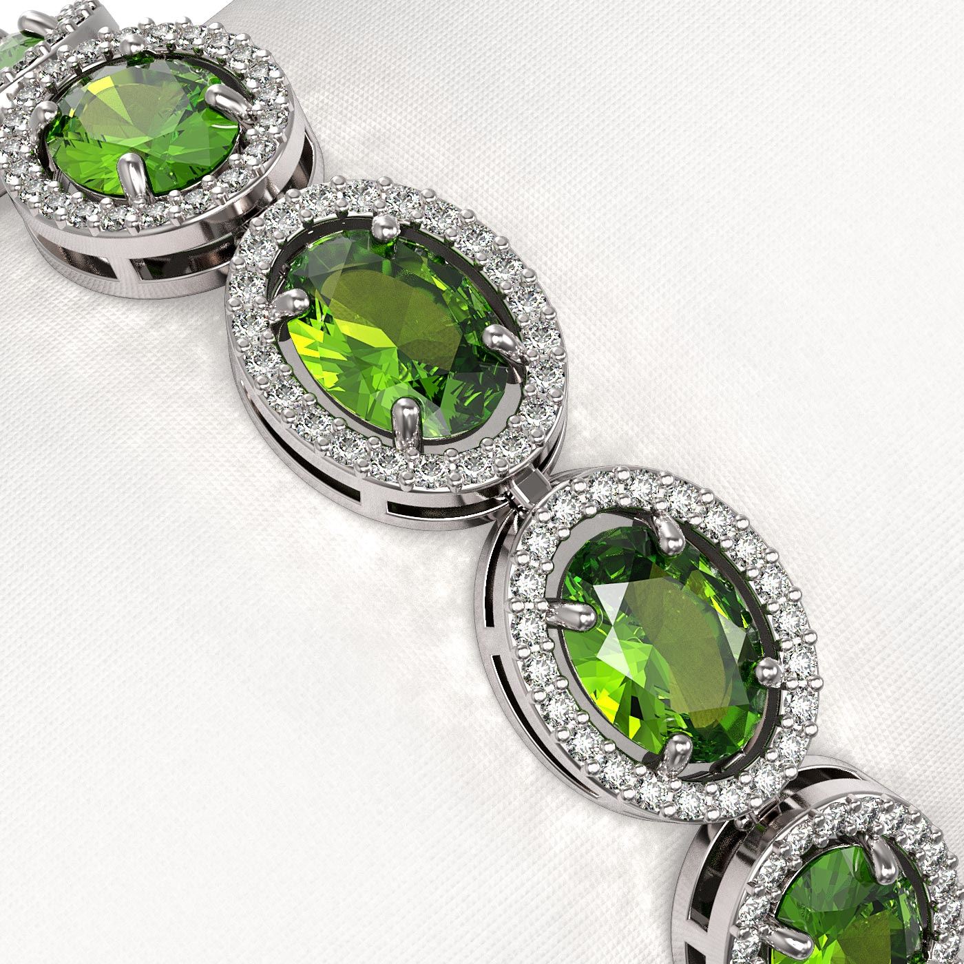 REF-290A9N - SKU: 40628 ---- 21.13 ctw Peridot & Diamond Micro Pave Halo Bracelet 10k White Gold