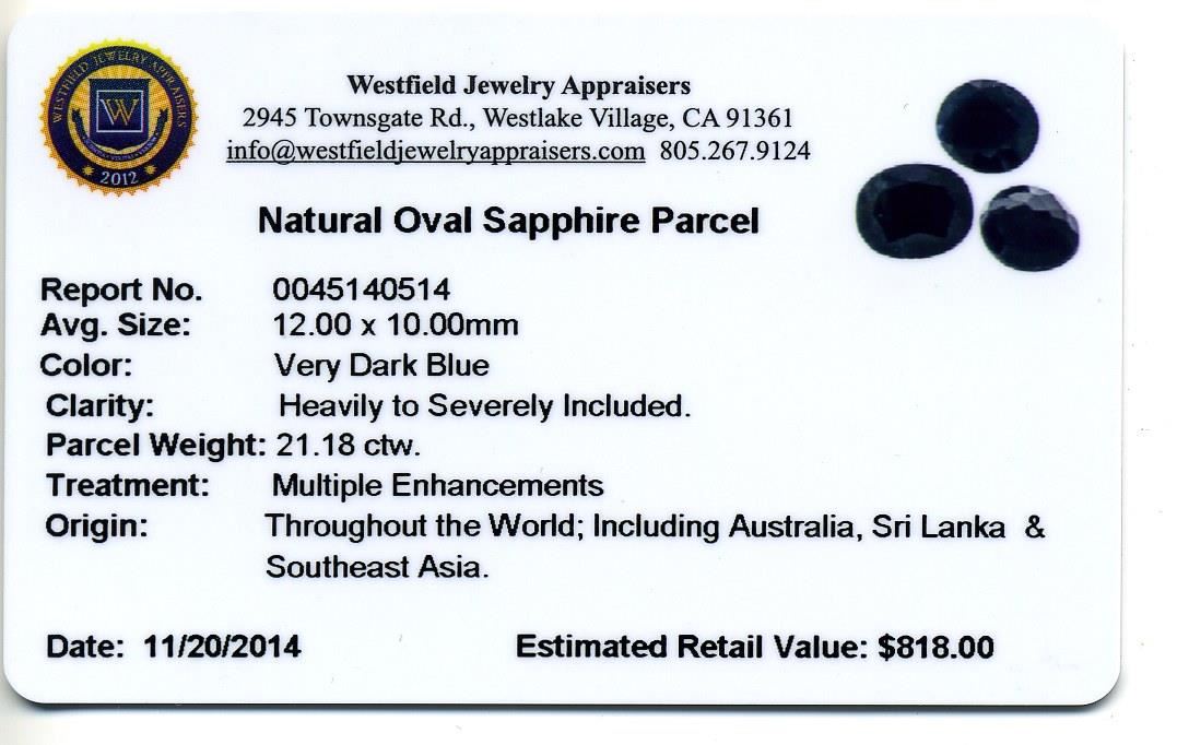 21.18ctw. Natural Oval Sapphire Parcel. Westfield Appraised at $818.00.