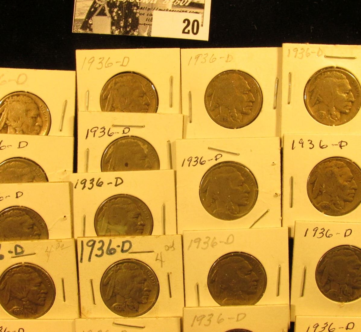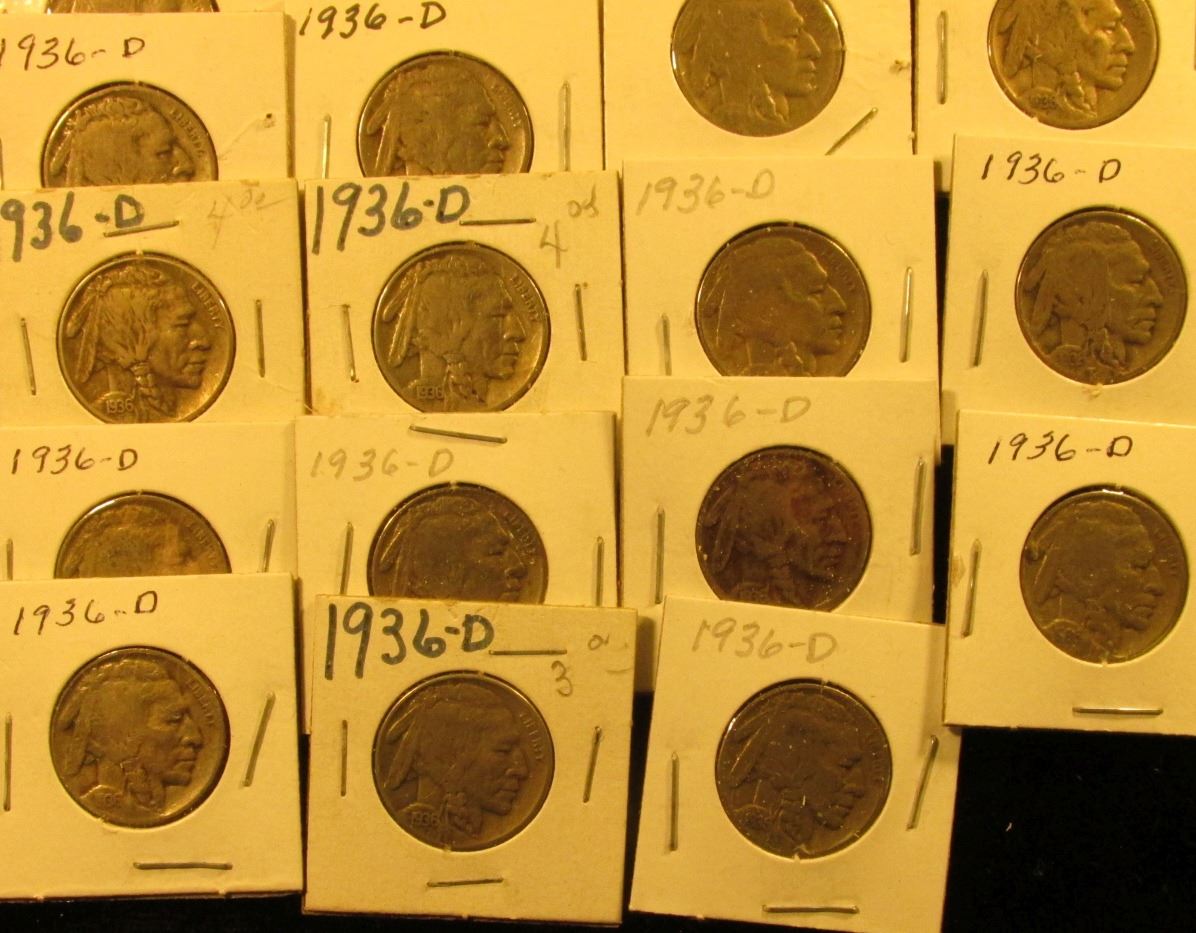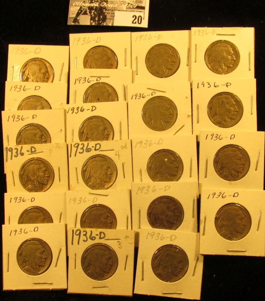 (21) 1936 D Buffalo Nickels all carded in 1 1/2" holders.