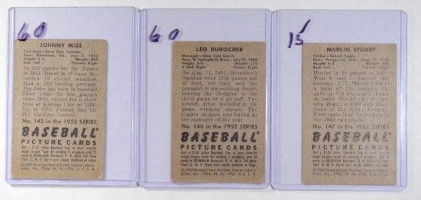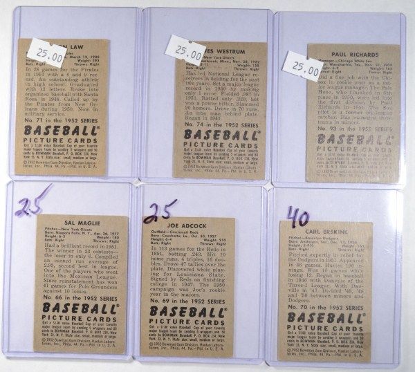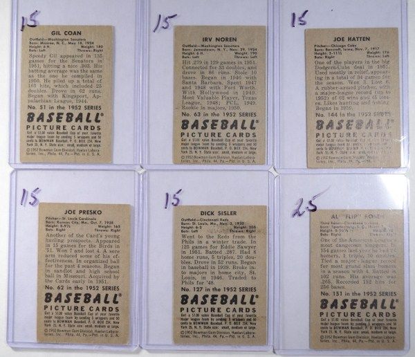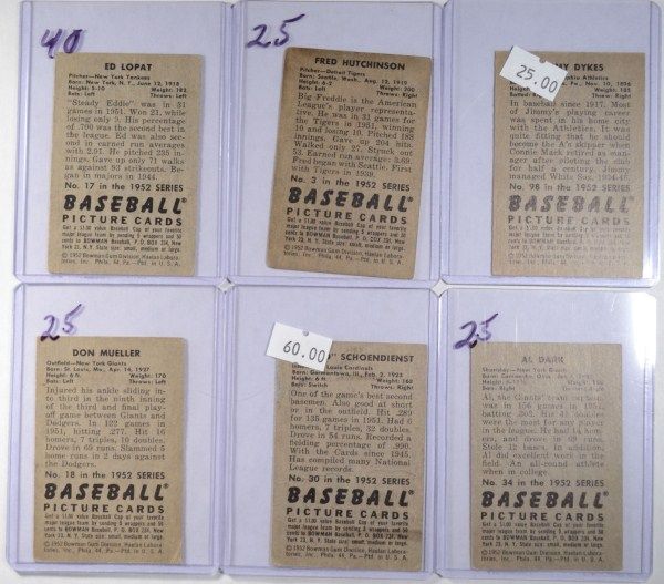 INCLUDES; #3, 17 LOPAT, 18, 30 SCHODENDIENST, 34, 51, 62, 63, 66, 69, 70 ERSKINE, 71, 74, 93, 98, 127, 144, 145 MIZE VG, 146 DUROCHER, 147, 151 TOTAL BOOK VALUE $600, VGEX