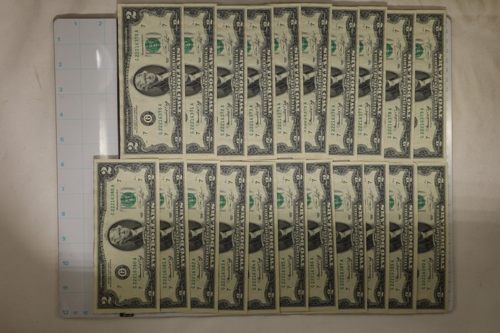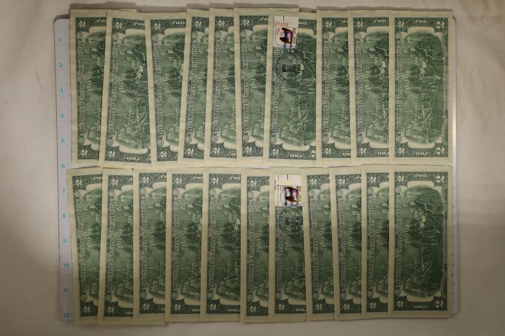 WITH CONSECUTIVE SERIAL NUMBERS, 2 OF THEM HAVE US 13 CENT CANCELLED STAMPS ON THE REVERSE