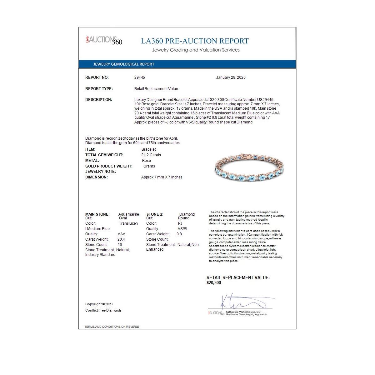 REF-263H6R - SKU: 29445 ---- 21.2 ctw Aquamarine & VS/SI Diamond Eternity Bracelet 10k Rose Gold