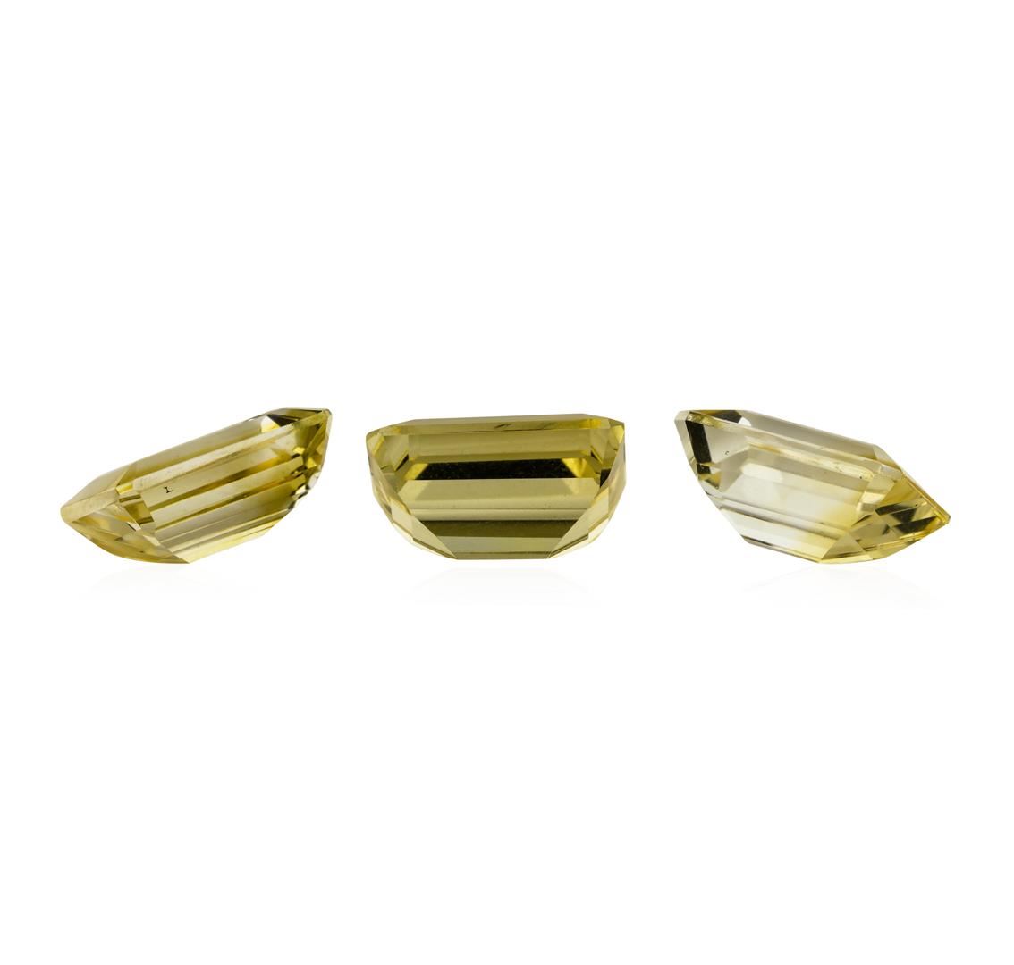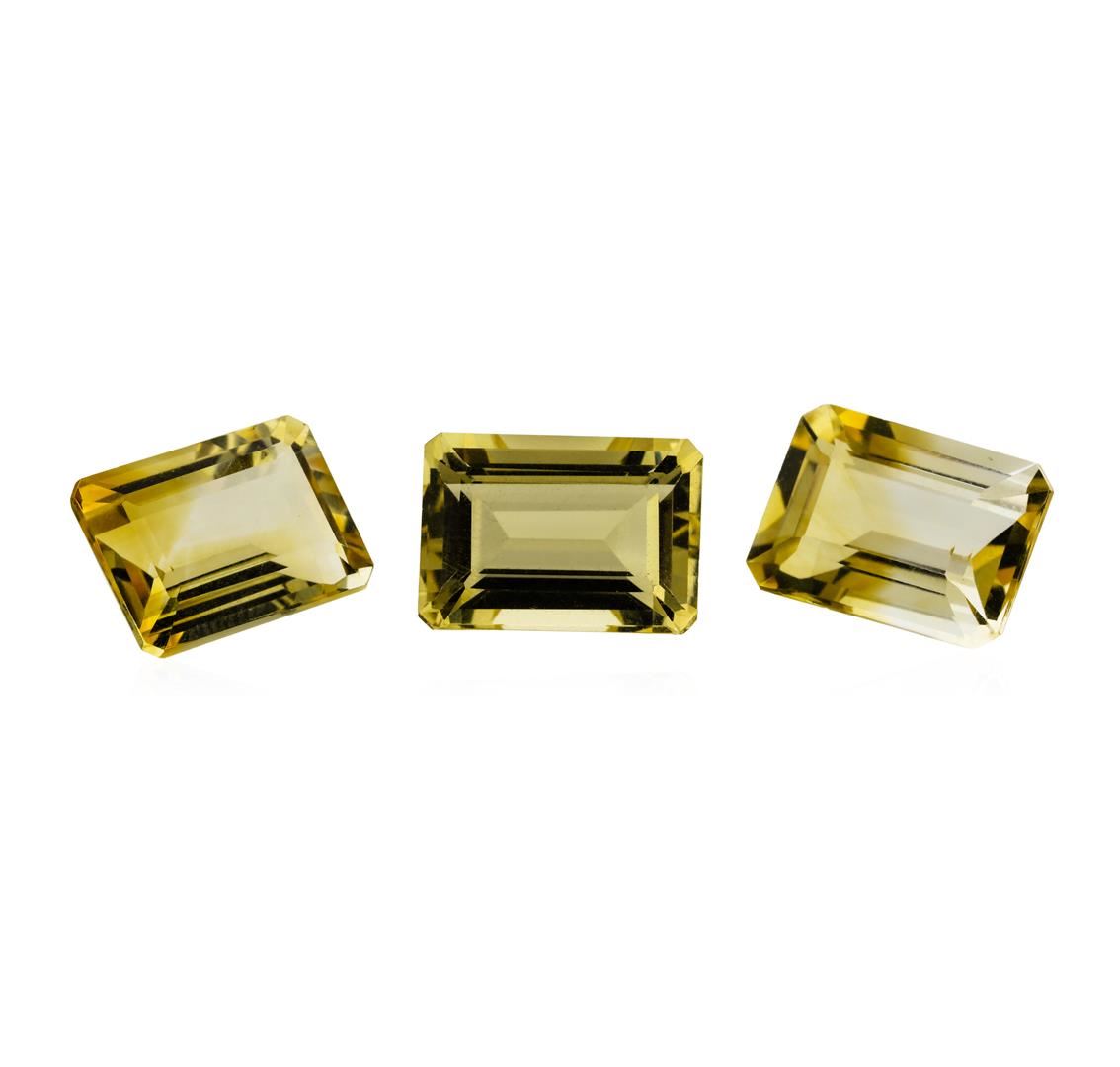 One natural emerald cut citrine quartz parcel of three with an exact weight of 21.21ctw., clarity is eye clean, slightly yellowish orange, medium to medium light. Gemological Appraisals Services estimates the retail value at $636.3 GAS Appraised.