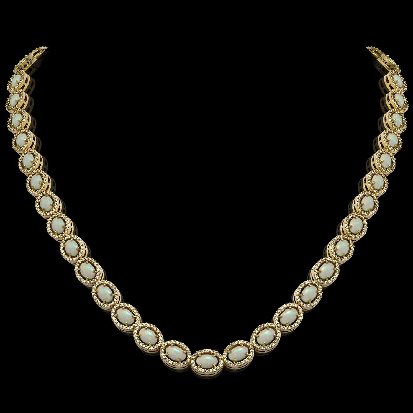 REF-581A8N - SKU: 40417 ---- 21.21 ctw Opal & Diamond Micro Pave Halo Necklace 10k Yellow Gold