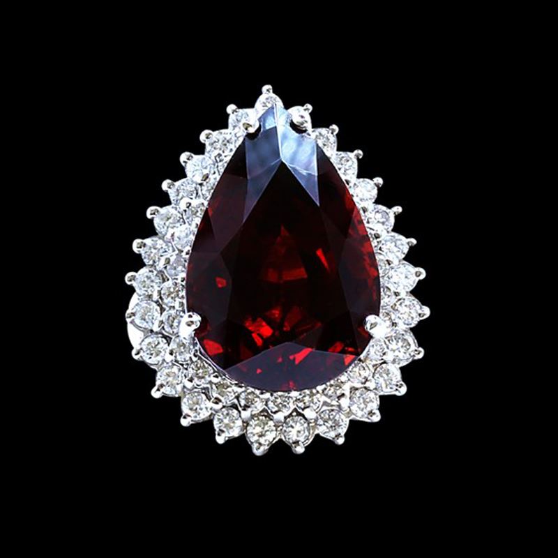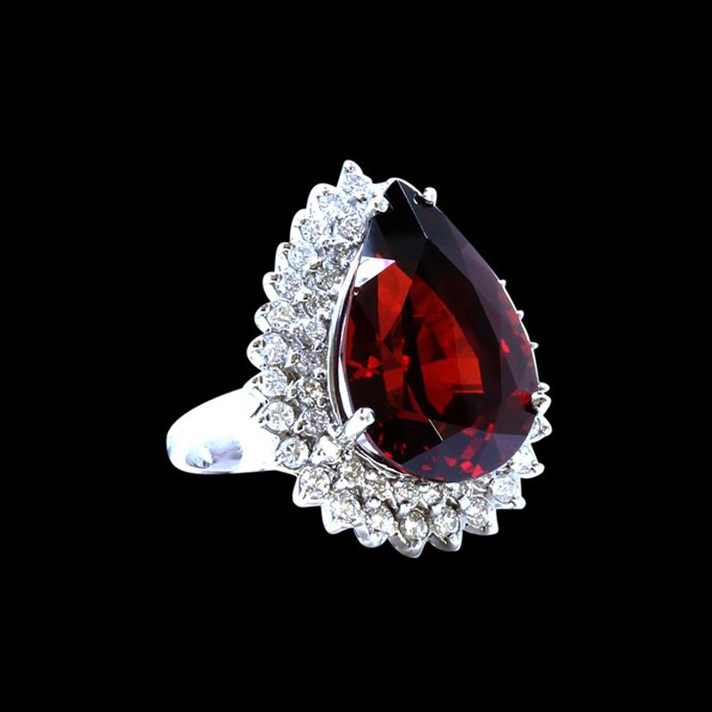 14K WHITE GOLD NATURAL MALAYA GARNET RING:8.04 GRAMS/DIAMOND:1.30CT/MALAYA GARNET:21.23CT/#GVR1104/MALAYA GARNET IS THE VERY RARE GARNET IN THE GARNET FAMILY. VERY HARD TO FIND THIS KIND OF COLOR AND QULAITY