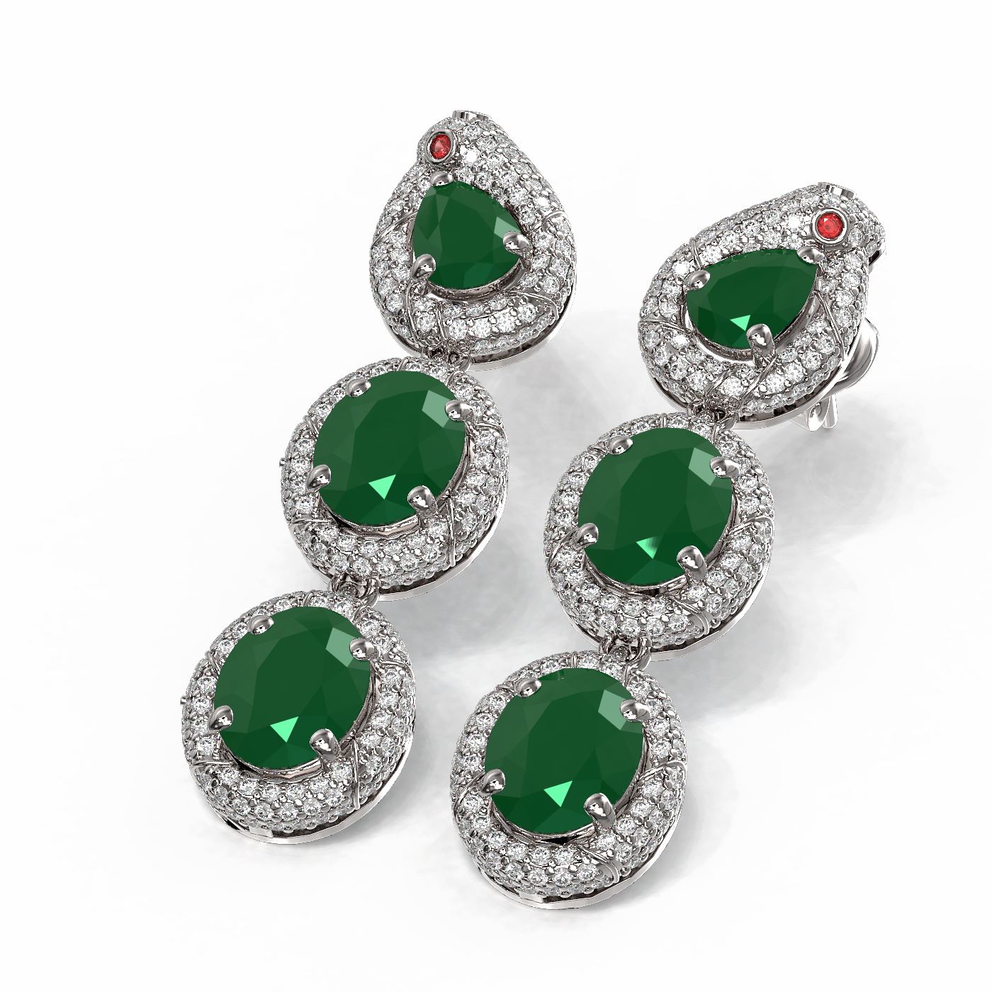 REF-513M5G - SKU: 53017 ---- 21.3 ctw Emerald & Diamond Earrings 18K White Gold