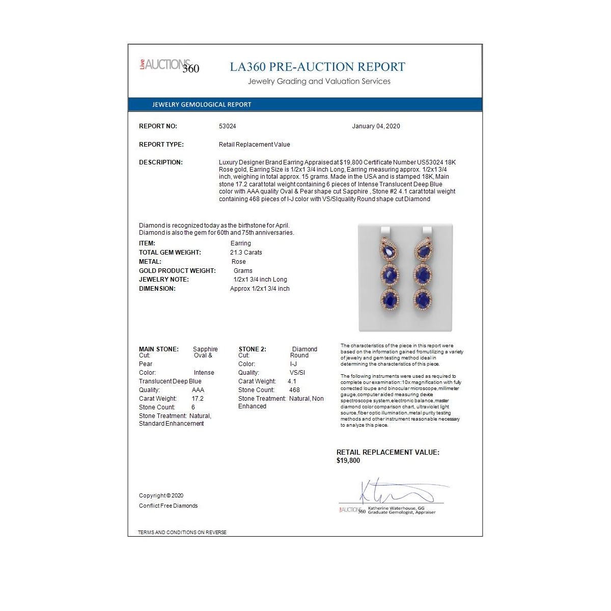 REF-467K6Y - SKU: 53024 ---- 21.3 ctw Sapphire & Diamond Earrings 18K Rose Gold